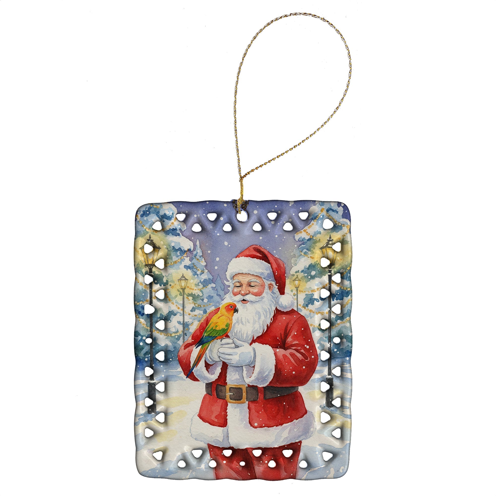 Sun Conure with Santa Claus Porcelain Ornament