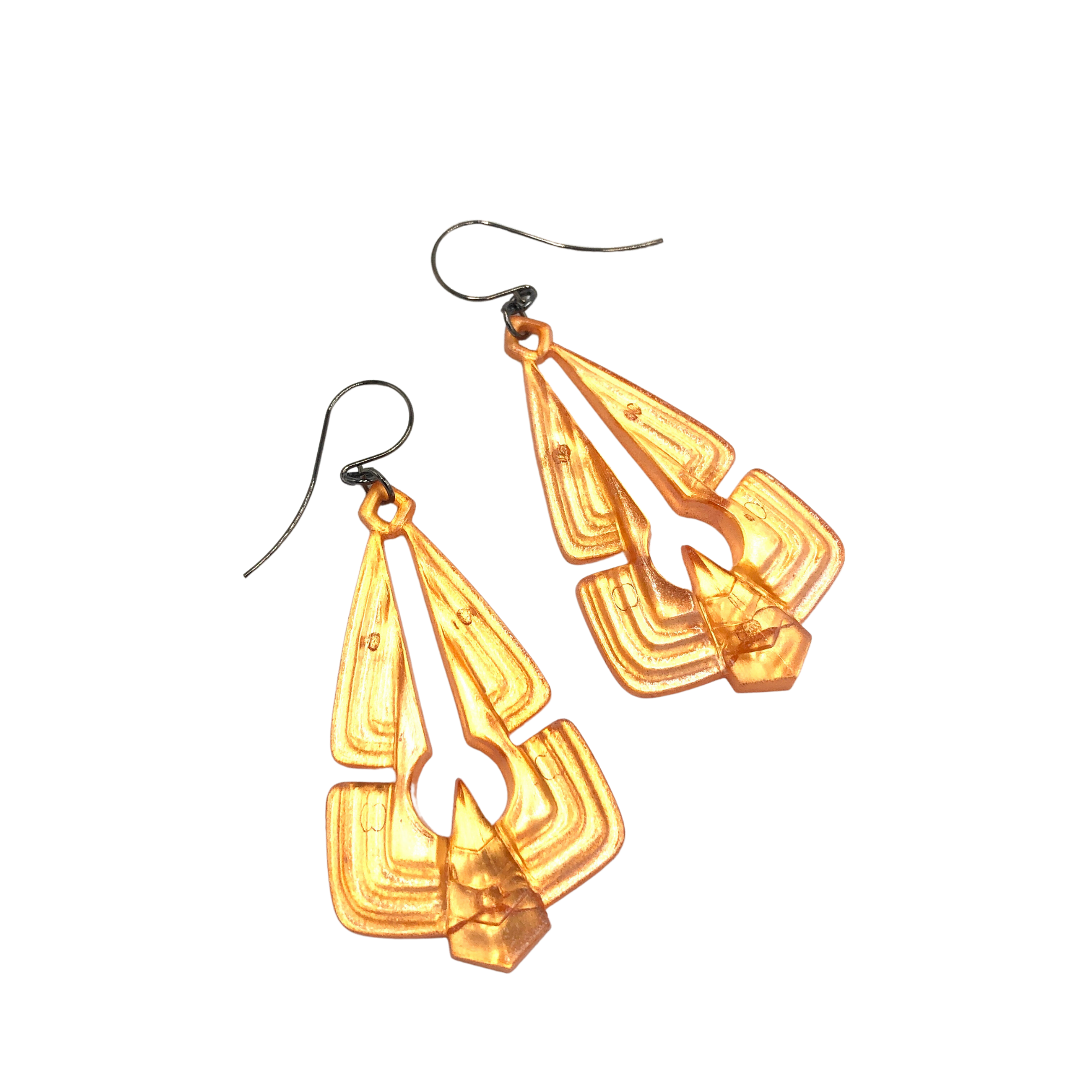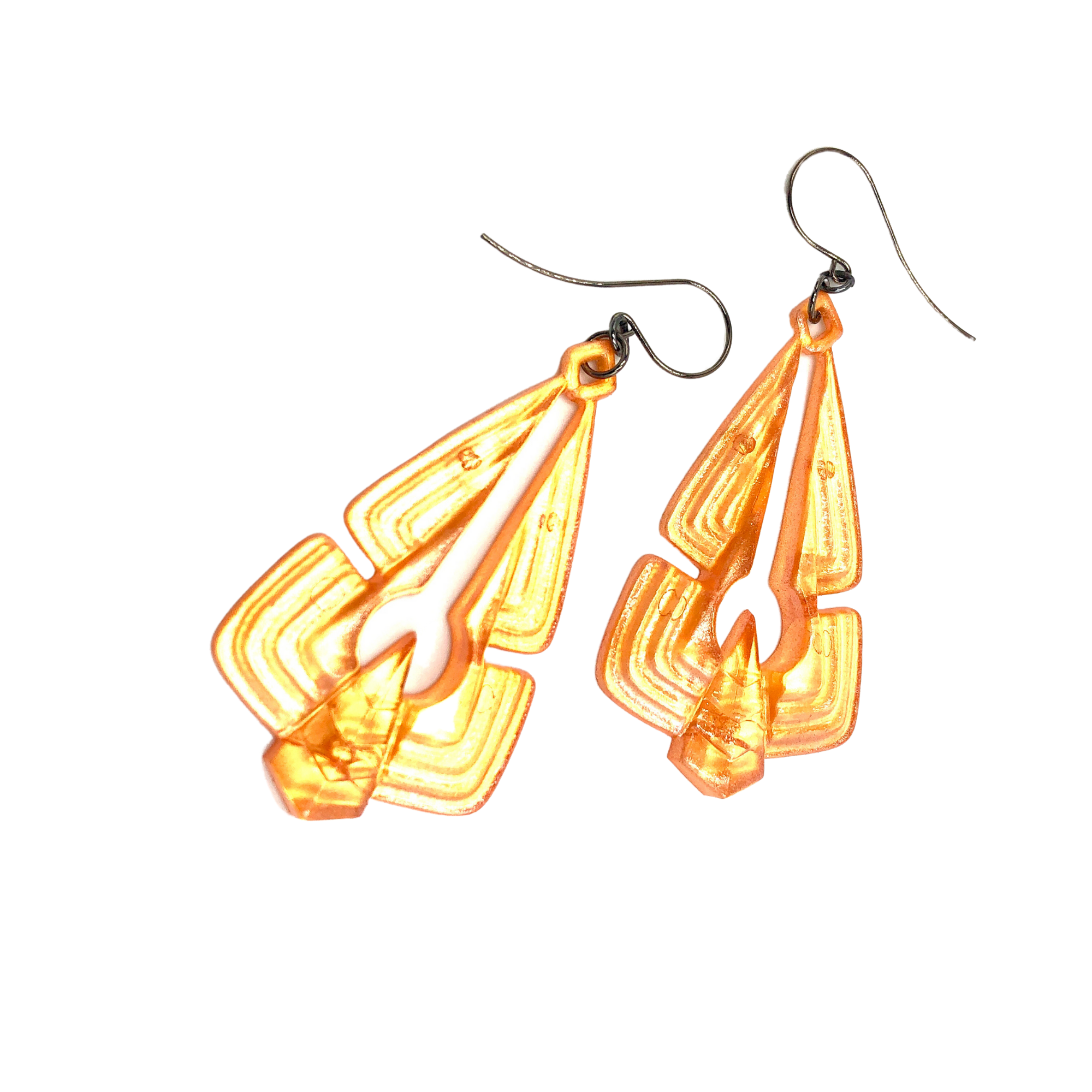 Orange lucite earrings with a silver pearlized coating on one side, adding an over all glow to their finish. A style statement that looks and feels good, these earrings are crafted using only the highest quality materials in an effort to bring you a timeless piece you can show off with confidence.