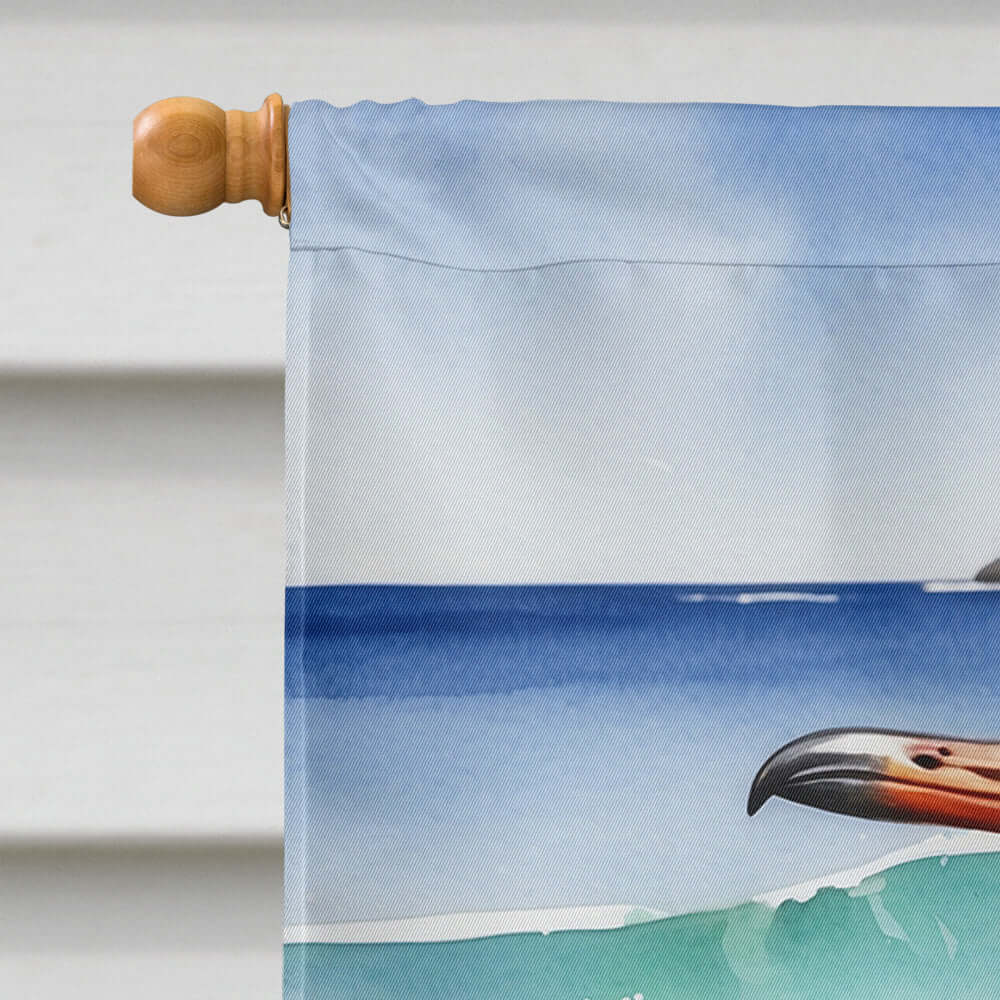 House Flag featuring breed specific Surfbird artwork. Presenting our Heavy Duty Polyester House Size Decorative Sleeve Pole Flag, a vibrant addition to enhance the aesthetic appeal of your home. This large decorative flag, measuring approximately 28 x 40 inches, offers ample coverage and visibility. Each flag is meticulously sewn and made individually, ensuring a unique piece that may slightly vary in size. It's a sleeve pole flag, designed to fit a standard decorative flag pole effortlessly. Please note that the flag pole and bracket are not included and should be purchased separately. What sets our flag apart is its dual-sided print. The design is mirrored on both sides of the fabric, allowing for uniform visibility regardless of the angle. Printed in full color, our flag showcases vibrant hues that truly stand out. To ensure lasting vibrancy and durability, the dyes are heat-set into the fabric. This ensures your flag remains bright and captivating through various weather conditions. Elevate the look of your home with our Heavy Duty Polyester House Size Decorative Sleeve Pole Flag!