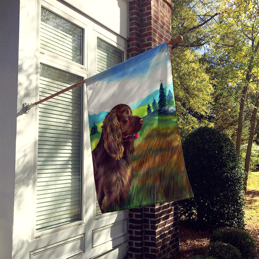 Decorate your space with our Sussex Spaniel artwork on a Large Flag. Presenting our Heavy Duty Polyester House Size Decorative Sleeve Pole Flag, a vibrant addition to enhance the aesthetic appeal of your home. This large decorative flag, measuring approximately 28 x 40 inches, offers ample coverage and visibility. Each flag is meticulously sewn and made individually, ensuring a unique piece that may slightly vary in size. It's a sleeve pole flag, designed to fit a standard decorative flag pole effortlessly. Please note that the flag pole and bracket are not included and should be purchased separately. What sets our flag apart is its dual-sided print. The design is mirrored on both sides of the fabric, allowing for uniform visibility regardless of the angle. Printed in full color, our flag showcases vibrant hues that truly stand out. To ensure lasting vibrancy and durability, the dyes are heat-set into the fabric. This ensures your flag remains bright and captivating through various weather conditions. Elevate the look of your home with our Heavy Duty Polyester House Size Decorative Sleeve Pole Flag!