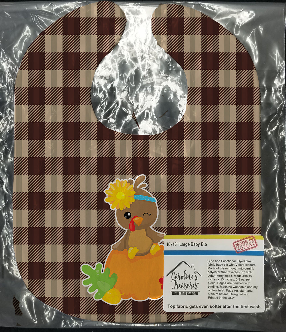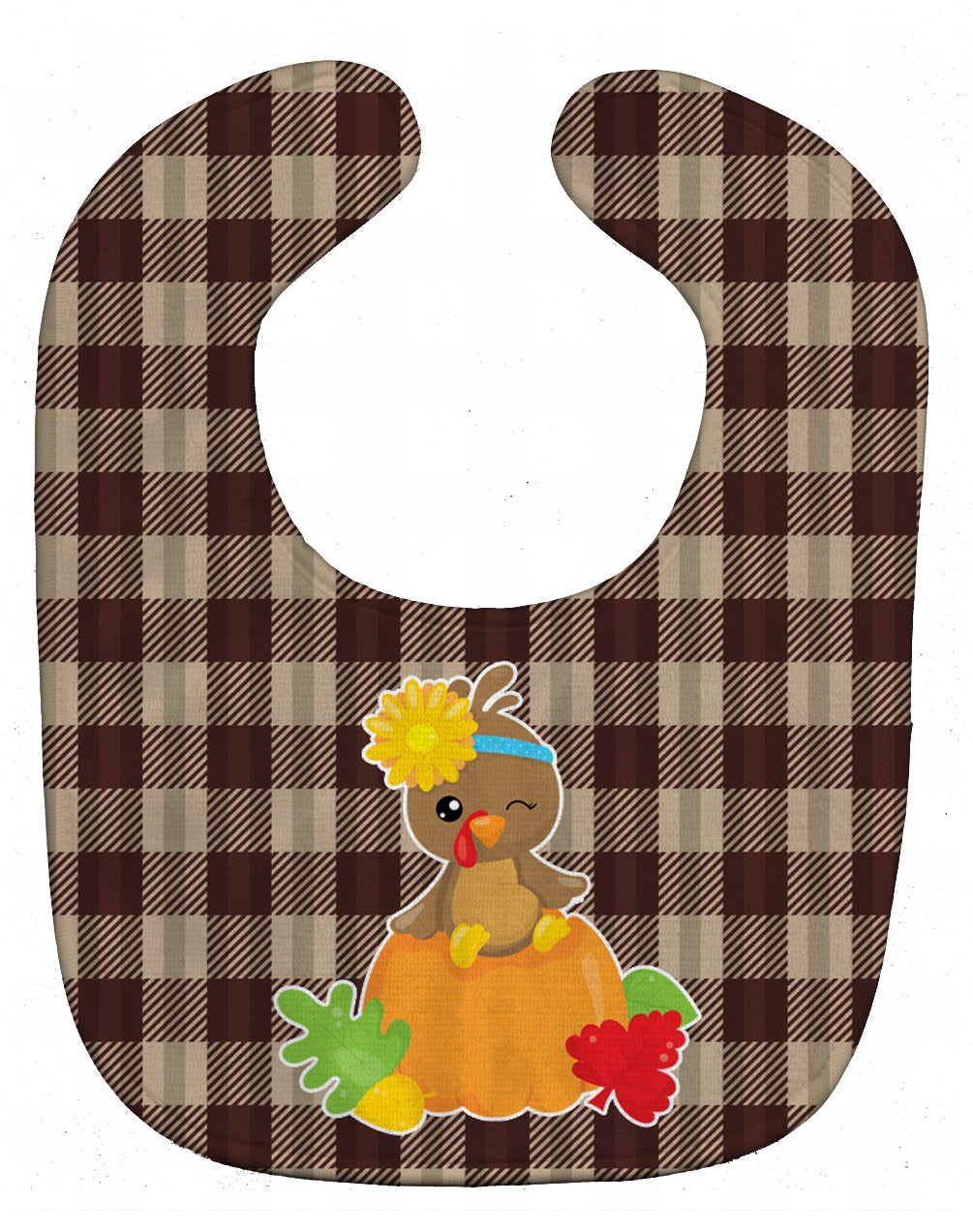 Decorate your space with our Thanksgiving Turkey artwork on a Baby Bib. Cute and Functional. Dyed plush fabric baby bib with Velcro closure. Made of ultra-smooth micro-mink polyester that reverses to 100% cotton terry loops. Measures 10 inches x 13 inches, 0.8 oz. per piece. Edges are finished with binding. Machine washable and dry on low heat. Fade resistant and stain resistant. Top fabric gets even softer after the first wash.