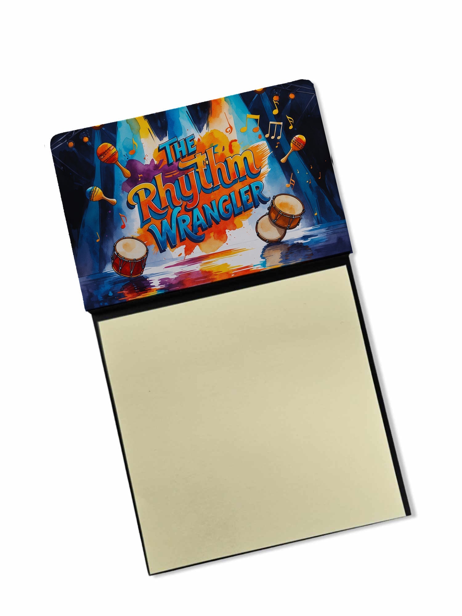 Celebrate the educators who inspire every day with this funny teacher sticky note holder from Caroline’s Treasures. Proudly made in the USA, each design features the phrase The Rhythm Wrangler - in bold, colorful artwork that turns an everyday desk accessory into a thoughtful gift. The sturdy base holds 3" x 3" sticky notes securely while you write, and the glossy aluminum art plate adds a durable, fade-resistant finish that lasts. Refilling is easy—just roll a piece of tape around your finger, press it to the back sheet of a new pad, and attach it to the board. Ideal for classrooms, offices, or home desks, these note holders make a meaningful gift for Teacher Appreciation Week, back-to-school, end-of-year celebrations, or simply saying thank you.