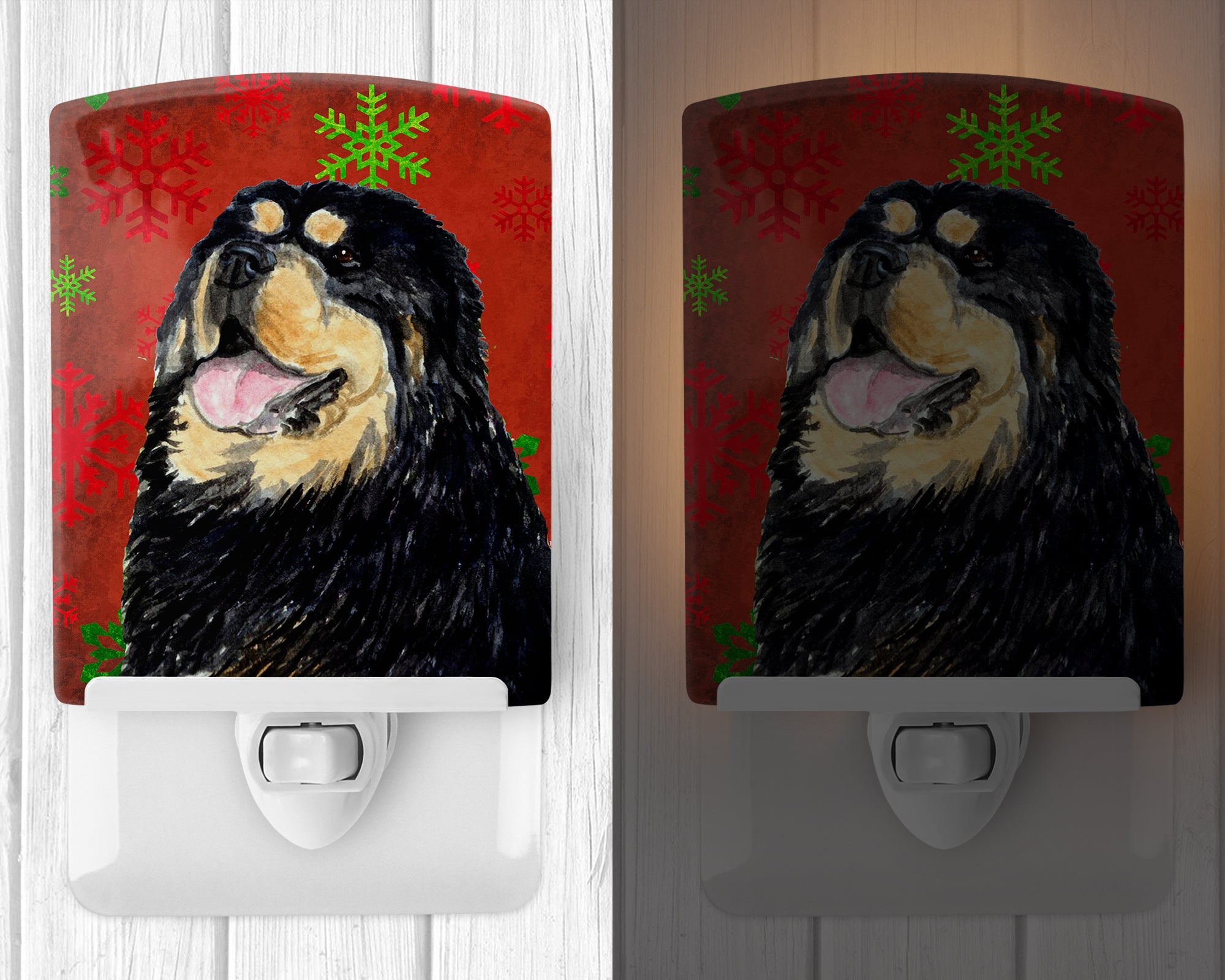 Decorate your space with our Christmas Mastiff artwork on a Night Light. Introduce a splash of artistic flair and subtle illumination to your space with the Decorative Ceramic Night Light from Caroline's Treasures. Perfect for any room, this night light seamlessly blends functionality with an aesthetic appeal, offering a stylish solution to brighten up dark corners of your home or office. Boasting a six-inch high by four-inch wide ceramic tile at the front, it showcases vivid, full-color artwork from distinguished artists, transforming a simple utility into a vibrant art piece. The artwork is securely encased in a robust metal holder, ensuring durability and longevity. Two screws are provided to firmly affix the tile into the holder. The holder extends three inches deep, housing an included bulb that emits a soft, welcoming glow. This product meets all safety standards, as evidenced by its UL approval. Proudly made in the United States from imported components, this Decorative Ceramic Night Light is not just a functional device; it's a statement piece that enhances the ambiance of your surroundings.