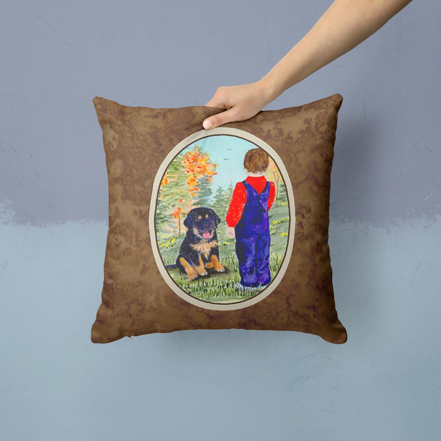 Decorate your space with our Tibetan Mastiff artwork on a Pillow. Add a touch of vibrancy and comfort to your outdoor seating with Caroline's Treasures Fabric Decorative Pillow. Measuring approximately 14 inches by 14 inches, this outdoor pillow is crafted to elevate the appeal of your patio furniture, infusing it with vivid color and artistic flair. The pillow includes a 100% Polyester Fabric sham filled with a quality pillow form to provide superior comfort. Innovatively made from our brand new material, specifically woven for its water resistance, this pillow is designed for durability. The soft canvas fabric offers versatility in use, fit for your indoor couch or your outdoor patio, porch, or veranda. The fabric is dyed with colorfast dyes built for resilience against weather conditions, ensuring the pillow retains its beauty over time. Constructed by sewing three fabric pieces to create a sham, the polyester insert is then nestled inside to form the pillow, resulting in an overstuffed pillow that maintains its shape. Both the sham and the pillow insert are proudly made in the United States. As the pillows are handcrafted, there may be minor variations in size, further enhancing their unique charm. Experience comfort in style with Caroline's Treasures Fabric Decorative Pillow.