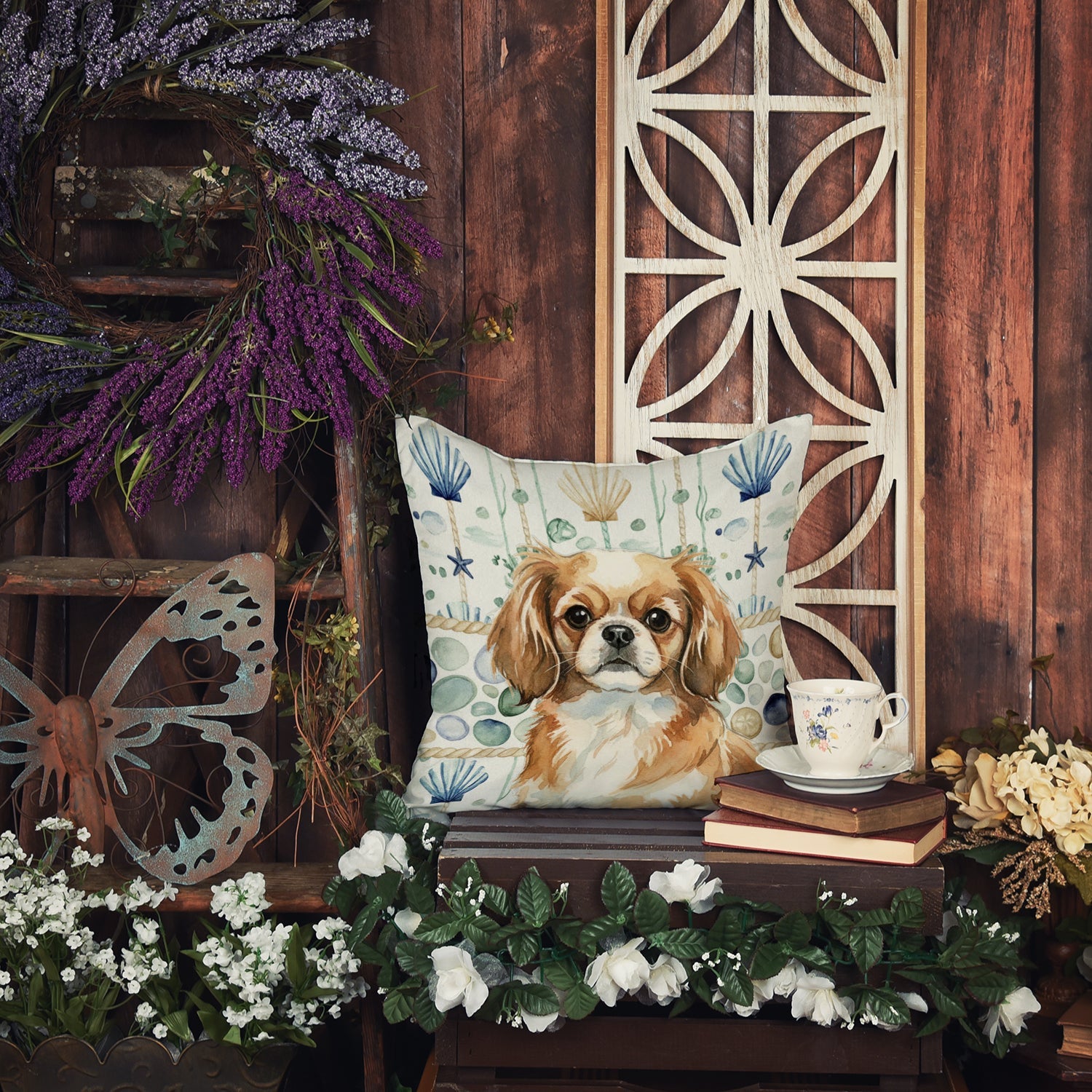 Throw Pillow featuring breed specific Tibetan Spaniel artwork. Revitalize your outdoor or indoor living space with Caroline's Treasures 18x18 Fabric Decorative Pillow. With a generously sized dimension of approximately 18 inches by 18 inches, this pillow makes a comfortable and aesthetic addition to any seating area. Made from a unique, water-resistant material developed by Caroline's Treasures, the pillow sham is 100% polyester fabric that's durable and ready to weather any condition. Its vibrant, full-color artwork will not fade over time as it is dyed with color-fast dyes. Whether you place it on your patio furniture, porch, veranda, or indoor couch, its soft canvas fabric ensures a cozy experience. The pillow is handcrafted in the United States, featuring a sham created from three pieces of fabric and a polyester insert for enduring shape and overstuffed comfort. Despite being robustly built to endure the outdoors, it is as soft and snug as your favorite indoor cushions. Please note, as all our pillows are handmade, sizes may vary slightly, adding to the charm of this unique decorative item.