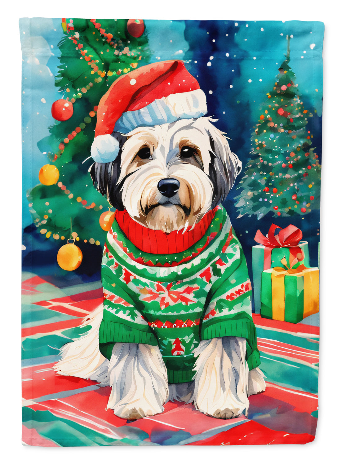 Decorate your space with our Christmas Tibetan Terrier artwork on a Large Flag. Presenting our Heavy Duty Polyester House Size Decorative Sleeve Pole Flag, a vibrant addition to enhance the aesthetic appeal of your home. This large decorative flag, measuring approximately 28 x 40 inches, offers ample coverage and visibility. Each flag is meticulously sewn and made individually, ensuring a unique piece that may slightly vary in size. It's a sleeve pole flag, designed to fit a standard decorative flag pole effortlessly. Please note that the flag pole and bracket are not included and should be purchased separately. What sets our flag apart is its dual-sided print. The design is mirrored on both sides of the fabric, allowing for uniform visibility regardless of the angle. Printed in full color, our flag showcases vibrant hues that truly stand out. To ensure lasting vibrancy and durability, the dyes are heat-set into the fabric. This ensures your flag remains bright and captivating through various weather conditions. Elevate the look of your home with our Heavy Duty Polyester House Size Decorative Sleeve Pole Flag!