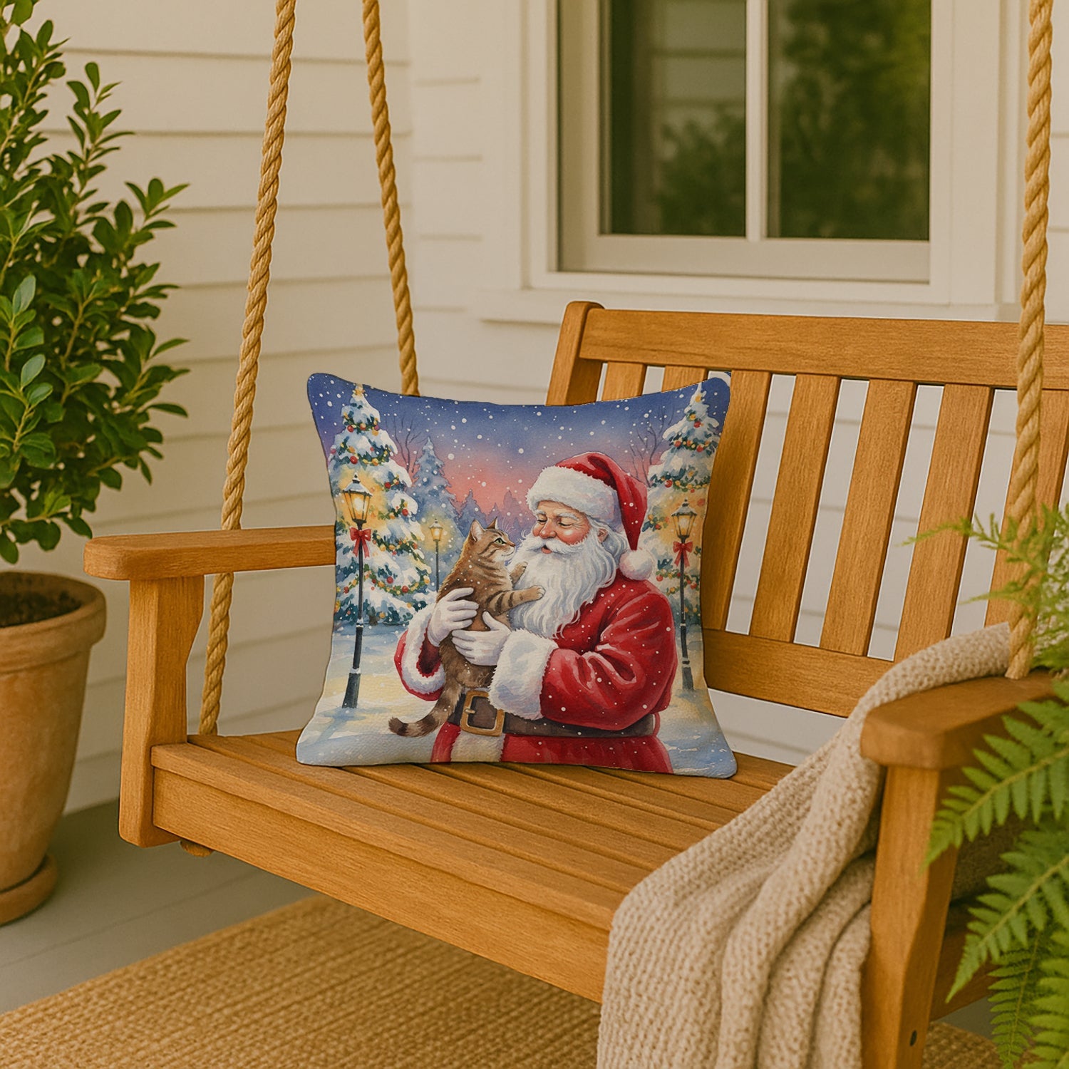 Ticked Tabby Brown Cat with Santa Claus Throw Pillow