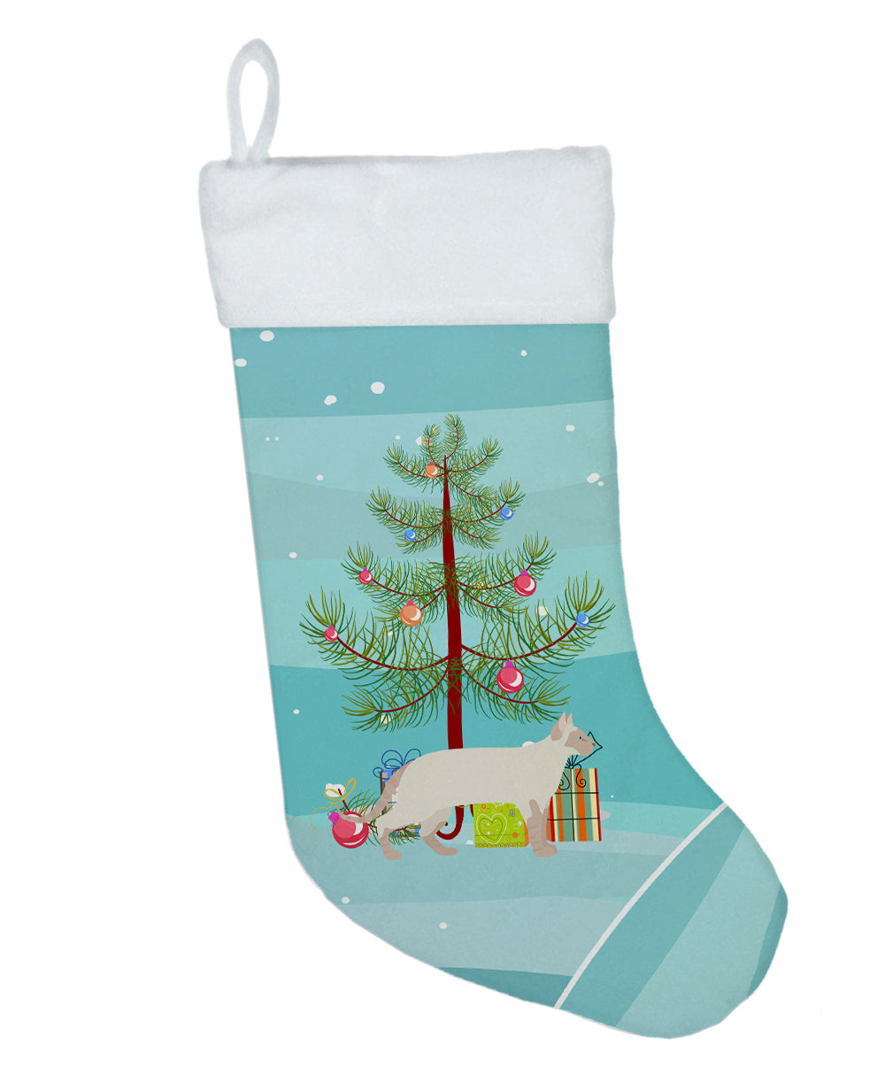 Decorate your space with our Christmas Tonkinese artwork on a Stocking. Bring the warmth of the festive season into your home with our luxurious Christmas Stocking. Designed to impress, this beautiful stocking is crafted from 100% polyester suede, delivering both superior softness and long-lasting durability. Measuring approximately 18 inches in height and 11 inches in width, it boasts generous space for a delightful assortment of Santa's gifts. What sets our Christmas Stocking apart is the exquisite design that is printed on both sides. Whether you hang it on the mantel or from a stocking hanger, the charming holiday print remains visible, adding a festive spirit to your décor from any direction. The stocking features a robust hanging tab that's crafted from the same suede fabric, guaranteeing secure hanging during the holiday excitement. An added bonus? This Christmas Stocking is completely machine washable. After the season's festivities, simply wash it, lay flat or hang to dry, and it's ready for the next holiday season. Proudly designed, printed and sewn in the United States, our stocking makes a stylish addition to your Christmas décor or a thoughtful gift for loved ones. Cherish the spirit of Christmas with our beautifully crafted, double-sided, easy-care stocking.