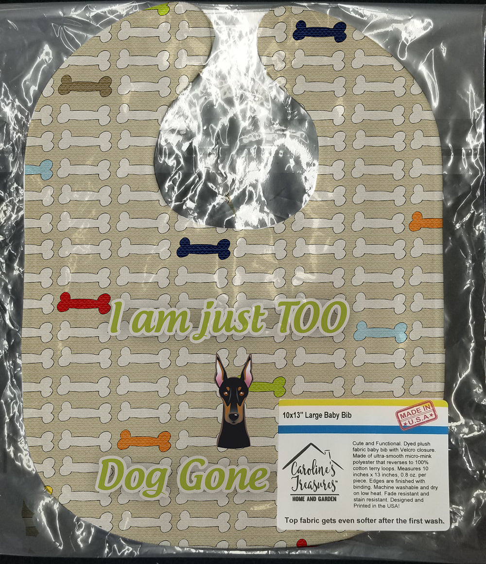 Decorate your space with our Doberman Pinscher artwork on a Baby Bib. Cute and Functional. Dyed plush fabric baby bib with Velcro closure. Made of ultra-smooth micro-mink polyester that reverses to 100% cotton terry loops. Measures 10 inches x 13 inches, 0.8 oz. per piece. Edges are finished with binding. Machine washable and dry on low heat. Fade resistant and stain resistant. Top fabric gets even softer after the first wash.