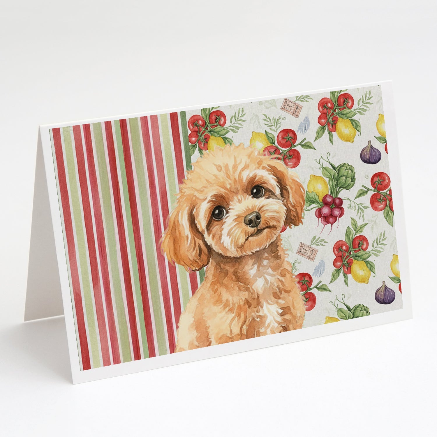 Toy Apricot Poodle Vegetables Greeting Cards Pack of 8