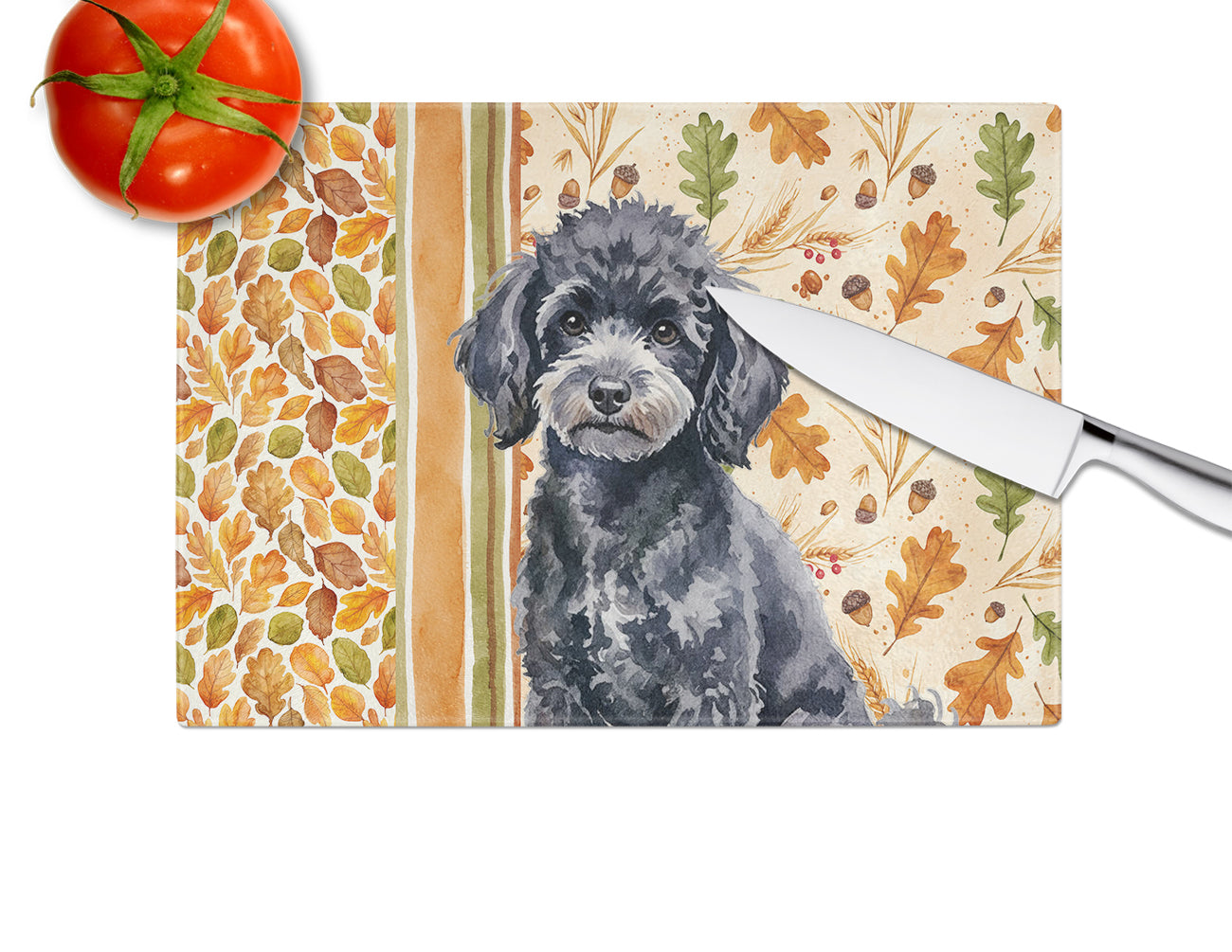 Toy Black Poodle Heirloom Fall Glass Cutting Board