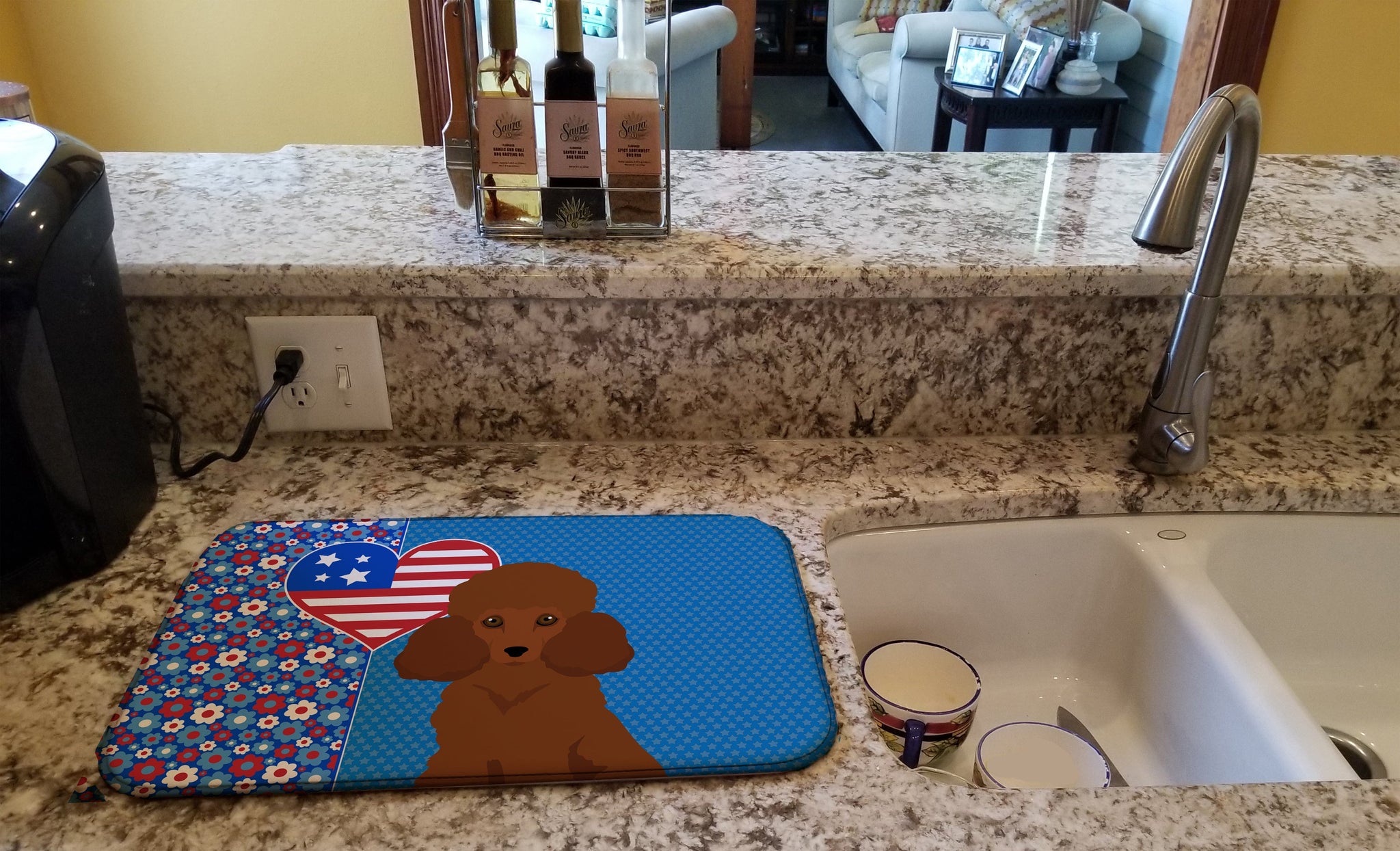 Toy Red Poodle USA American Dish Drying Mat – Absorbent, Artistic Kitchen Essentials