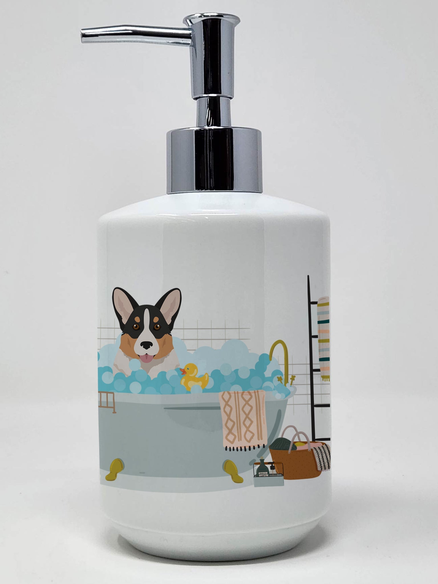 Decorate your space with our Corgi artwork on a Ceramic Soap Dispenser. Revitalize your kitchen or bathroom decor with the Decorative Ceramic Soap Dispenser from Caroline's Treasures. This refillable dispenser marries practicality and style, serving as a vibrant art piece in addition to its primary function. The dispenser's exterior boasts colorful artwork from one of Caroline's Treasures' artists, wrapping around the dispenser to add a touch of personality and color to your space. Measuring approximately 7 1/4 inches high and about 3 1/2 inches in diameter, it is the perfect size for any countertop. The dispenser features a sturdy pump nozzle, which screws easily into the top of the ceramic dispenser. With a simple press, you can conveniently dispense your preferred liquid soap, lotion, aromatherapy essential oil blend, shampoo, body wash, or even massage oils. The Decorative Ceramic Soap Dispenser is more than a functional item - it's a statement piece that adds a unique touch to your bathroom or kitchen decor, transforming everyday rituals into an artful experience.