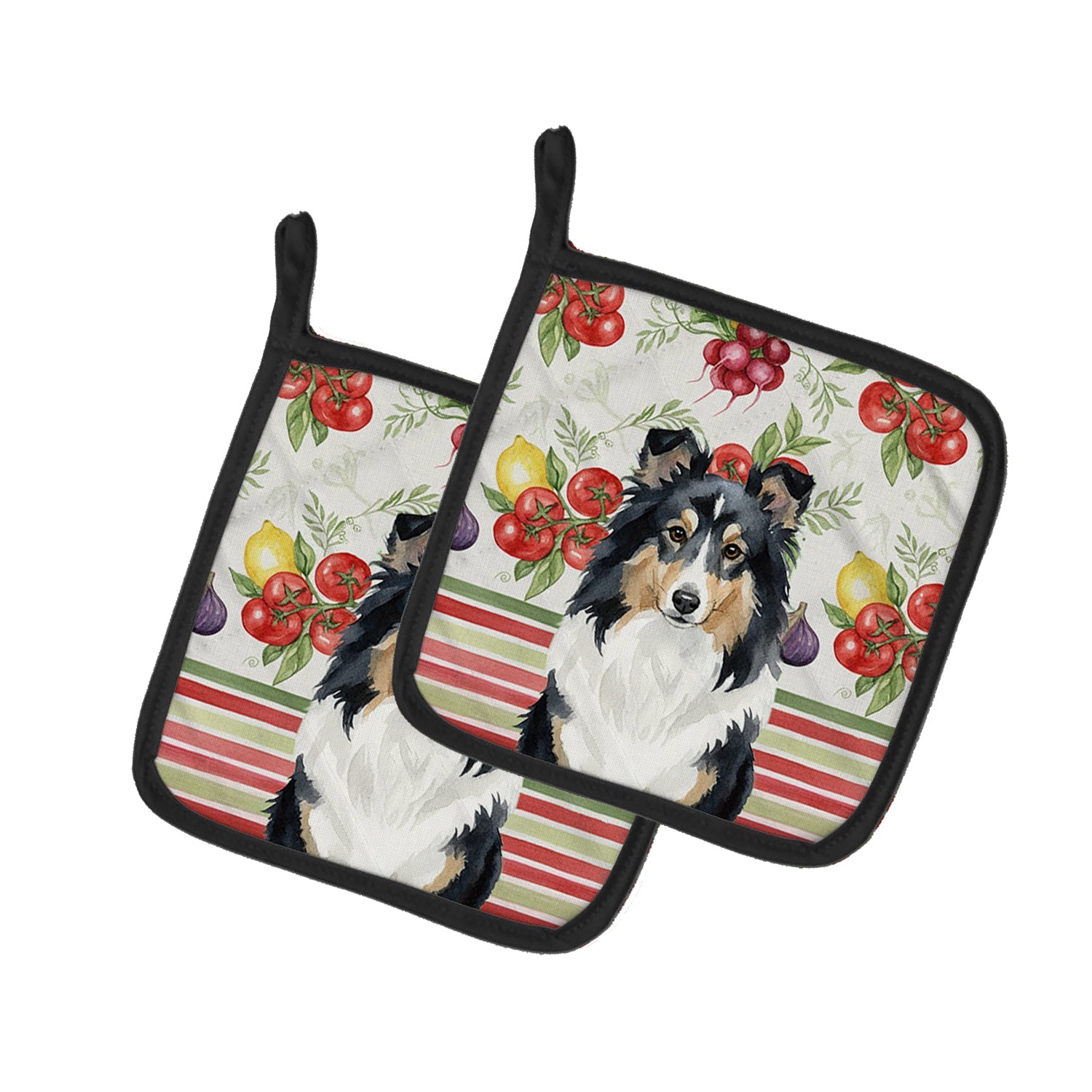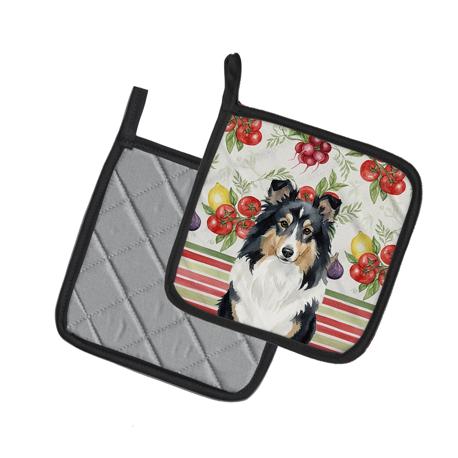 Pair of Pot Holders featuring breed specific Sheltie Shetland Sheepdog artwork. Add warmth, personality, and function to your kitchen with our Vegetables Pot Holder Pair. Each set includes two quilted hot pads, featuring original full-color watercolor artwork on a soft polyester front accented by black trim. Crafted with multiple layers for performance: Top Layer: Vibrant artwork permanently dyed into polyester fabric. Middle Layer: US-manufactured insulated material with breathable polyester fibers and a reflective metalized film that reflects heat back to its source. Bottom Layer: A silver heat-resistant backing for extra protection. Each pot holder measures 7.5" x 7.5", includes a hanging tab, and is quilted for durability. Use them to protect your hands, countertops, and tabletops — or as decorative trivets for Thanksgiving, Christmas, or everyday meals.