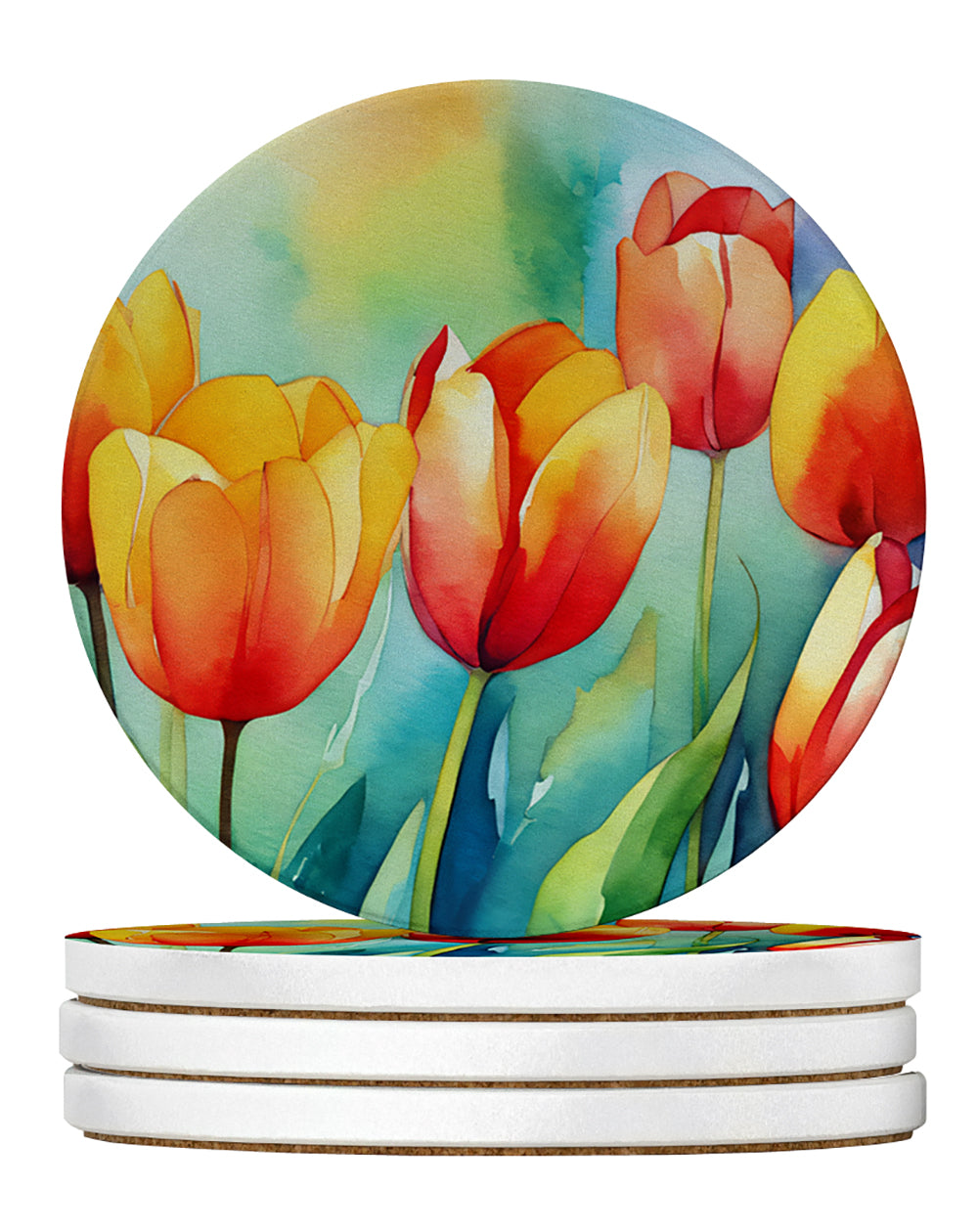 Large Sandstone Coasters Pack of 4 featuring breed specific Tulips artwork. Introducing Caroline's Treasures Large Sandstone Coasters Pack of 4, the perfect addition to your home decor. Each coaster measures nearly 4 inches and is made from absorbent sandstone with a cork backing. Designed and printed in the United States, these coasters feature artwork from Caroline's Treasures' talented artists. Protect your countertops and tables from hot and cold drink condensation with these absorbent coasters. They efficiently absorb moisture, ensuring your surfaces stay dry and clean. Choose from a wide range of designs to update and enhance your decor or give them as a thoughtful gift for any occasion. Cleaning is a breeze—simply wipe the coaster with a damp towel to remove any spills or stains. Each set comes in a brown gift box, making it ready to be wrapped for that special person in your life. These absorbent sandstone coasters also make an excellent housewarming gift, providing both practicality and style. Celebrate birthdays, Mother's Day, Father's Day, Thanksgiving, Christmas, Teacher's Appreciation Day, or simply show someone you care with these versatile and charming coasters. Caroline's Treasures Large Sandstone Coasters Pack of 4 is the perfect happy gift for any occasion.