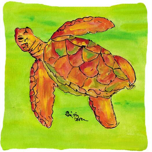 Decorate your space with our Turtle artwork on a Pillow. Add a touch of vibrancy and comfort to your outdoor seating with Caroline's Treasures Fabric Decorative Pillow. Measuring approximately 14 inches by 14 inches, this outdoor pillow is crafted to elevate the appeal of your patio furniture, infusing it with vivid color and artistic flair. The pillow includes a 100% Polyester Fabric sham filled with a quality pillow form to provide superior comfort. Innovatively made from our brand new material, specifically woven for its water resistance, this pillow is designed for durability. The soft canvas fabric offers versatility in use, fit for your indoor couch or your outdoor patio, porch, or veranda. The fabric is dyed with colorfast dyes built for resilience against weather conditions, ensuring the pillow retains its beauty over time. Constructed by sewing three fabric pieces to create a sham, the polyester insert is then nestled inside to form the pillow, resulting in an overstuffed pillow that maintains its shape. Both the sham and the pillow insert are proudly made in the United States. As the pillows are handcrafted, there may be minor variations in size, further enhancing their unique charm. Experience comfort in style with Caroline's Treasures Fabric Decorative Pillow.