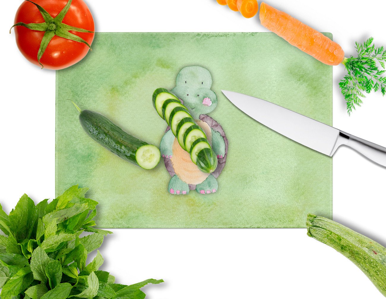 Decorate your space with our Turtle artwork on a Cutting Board. Introduce your kitchen to the vibrant, large Decorative Glass Cutting Board from Caroline's Treasures. Crafted from resilient tempered glass, this board is not only a utilitarian necessity but also a colorful art piece. With its generous dimensions of 15 inches in height and 12 inches in length, it offers ample space for all your cutting needs. Every piece showcases captivating artwork from distinguished artists, bringing an aesthetic edge to your kitchen. Beyond its attractive design, this cutting board ensures your countertop stays pristine and unscathed, owing to its heat-resistant properties. Engineered with user convenience in mind, it features non-skid feet for stability, and rounded corners for additional safety. Its robust construction renders it virtually unbreakable, guaranteeing longevity. The board comes with protective feet bumpers, maintaining its position during use. This product is recommended to be hand washed only. Proudly printed and assembled in the United States, this cutting board exemplifies superior craftsmanship. With Caroline's Treasures' Decorative Glass Cutting Board, you're investing in a blend of functionality and artistic flair.