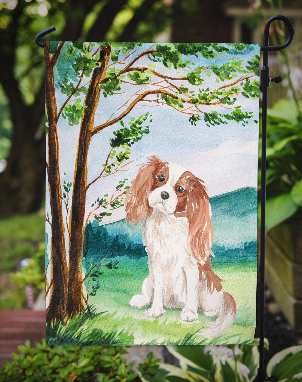 Decorate your space with our Cavalier King Charles Spaniel artwork on a Garden Flag. Bring a bit of Spring into your home with a Spring Garden Flag. Enhance the beauty of your garden, patio, or yard with Caroline's Treasures Decorative Garden Flag, proudly made in the USA. Crafted from two pieces of thick, double-sided polyester fabric, this 2-ply garden flag is designed to withstand various weather conditions, making it water-resistant and weatherproof. Featuring correctly readable words on both sides, this garden flag offers a delightful visual experience from any angle. With its heavier weight, it stands out among other garden flags, ensuring stability and durability even in wind, rain, and snow. Measuring approximately 11 1/4 inches by 15 1/2 inches, this flag allows you to personalize your outdoor decor. It comes with a 1 1/2-inch sleeve sewn in, allowing easy attachment to any standard garden flag stand or garden size porch hanger (sold separately). Make a statement in your outdoor space with Caroline's Treasures Decorative Garden Flag, a vibrant and high-quality flag that adds color and personality to your surroundings. Proudly made in the USA, it's a symbol of quality craftsmanship and attention to detail.