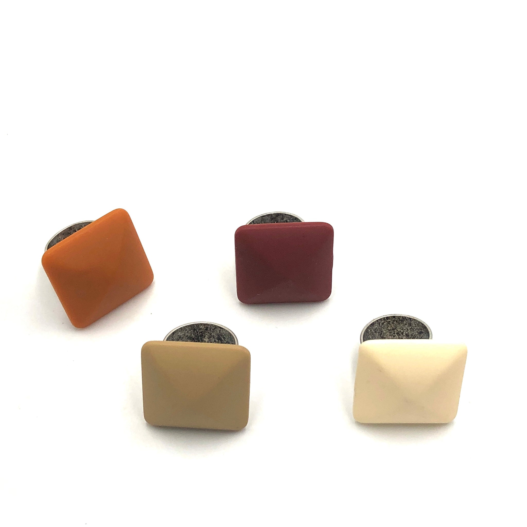 Velvety squares made with vintage lucite. Each 'stone' is made with vintage lucite & measures 28mm square. Made with a matte antique silver base AND adjustable. Fits all or most sizes. The plating on the band is made with .999 fine silver over brass and is 9.5mm wide.