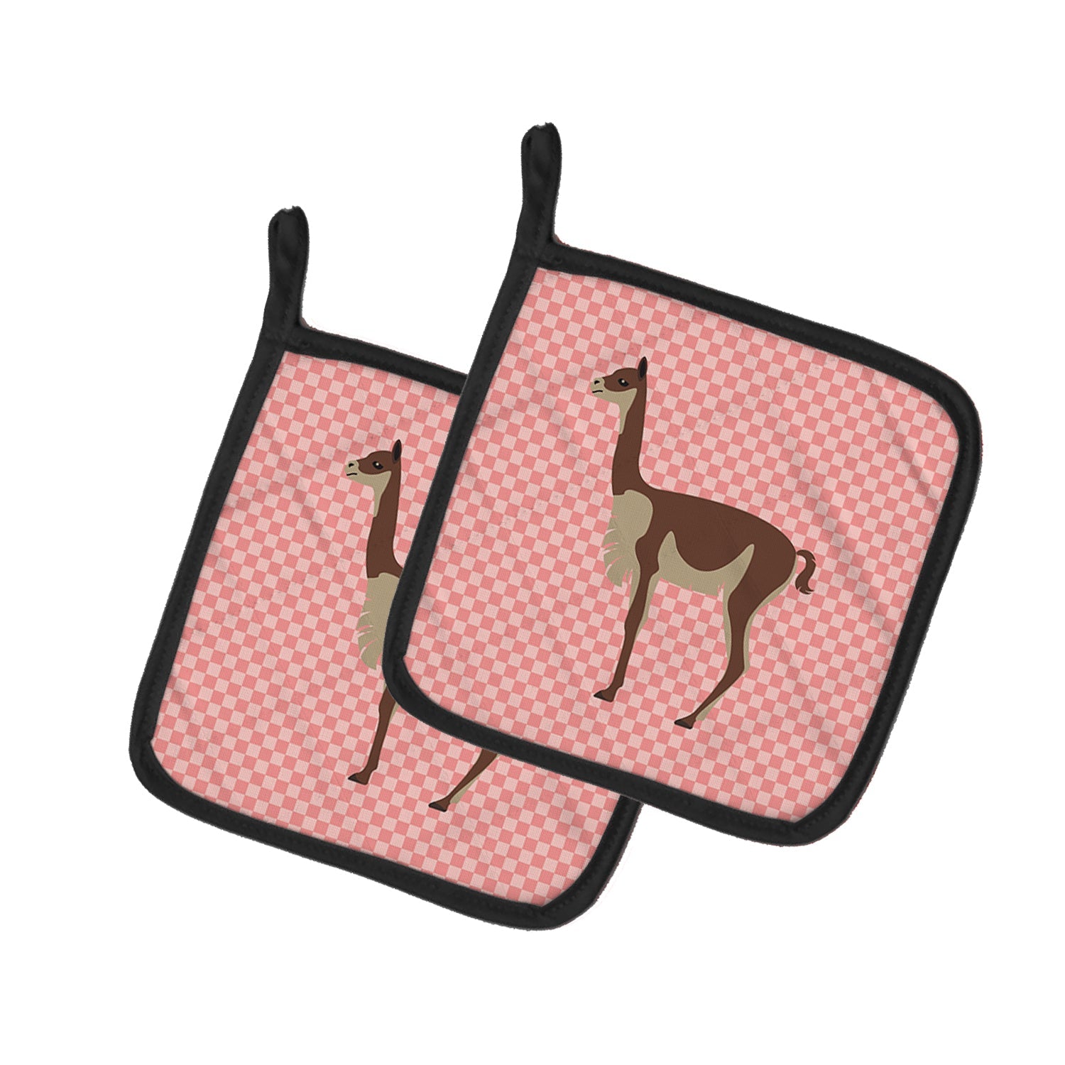Decorate your space with our Vicugna or Vicuna artwork on a Pair of Pot Holders. A Pair of Pot Holders to match your kitchen decor. Made in the USA these are thick and functional. Full color artwork decorates the front polyester fabric of the hot pad and accented by a black trim. Use these at as a trivet for your Thanksgiving or Christmas tablescape. Filled with insulated fabric and quilted for durability. These colorful pot holders will make a great gift for your favorite home cook or executive chef. Each pot holder measures approximately 7 1/2 inches by 7 1/2 inches. A hanging tab is included.