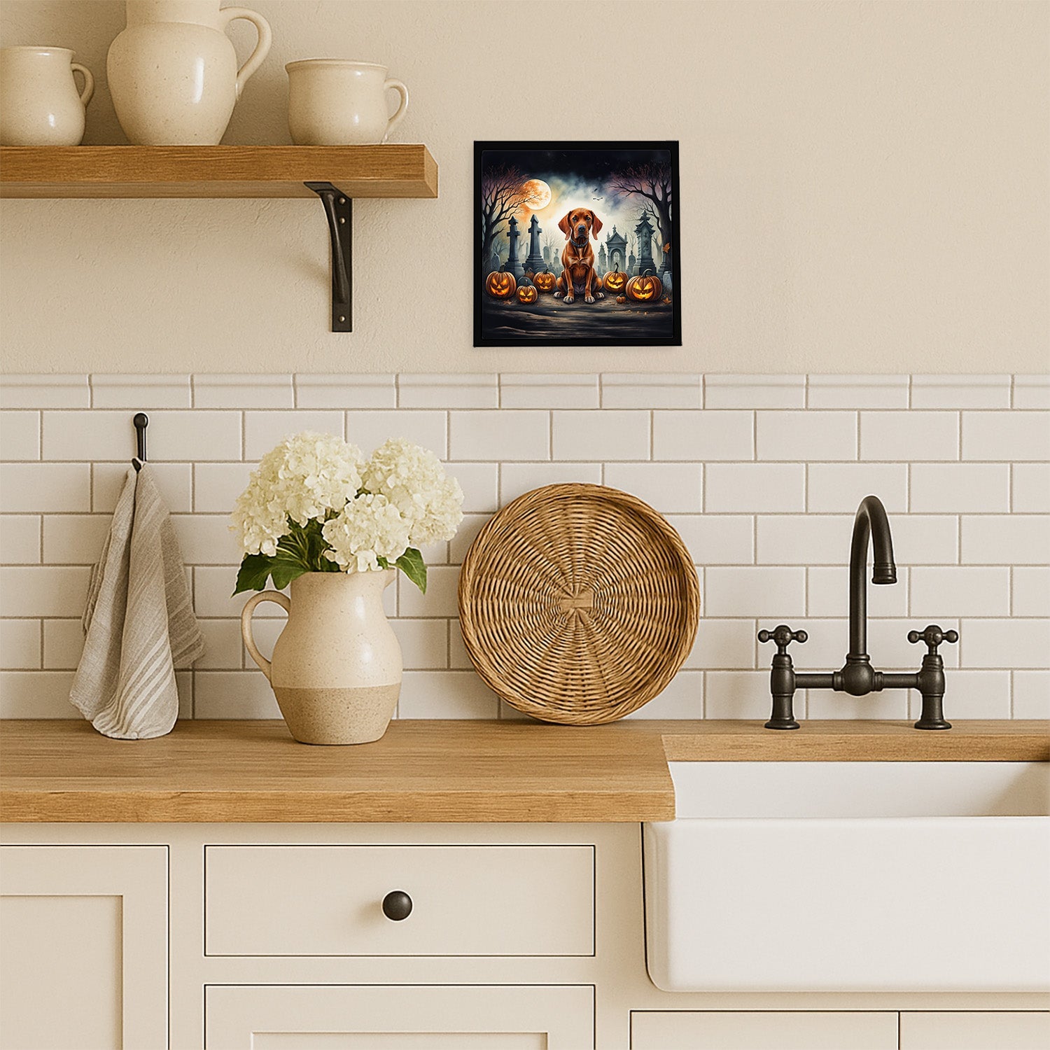 Framed Metal Print featuring breed specific Vizsla artwork. Celebrate Halloween with this Halloween Framed Metal Print. Looking for wall art that’s stylish, safe, and made to last? Our 8x8 Framed Metal Prints are designed with modern living in mind. Each piece features original artwork printed on durable aluminum, set in a sleek frame that measures 3/4 inch deep for a clean, contemporary finish. Unlike glass prints, these are lightweight, shatter-free, and family-safe. Perfect for kitchens, bathrooms, or covered porches where traditional décor might not hold up. The built-in sawtooth hanger molded into the back makes it easy to hang right out of the box—just use your own nails or screws. Cleaning is simple too: a quick wipe with a damp cloth and mild soap keeps your artwork looking vibrant. Proudly made in Alabama, every print supports our community of artists while adding personality and charm to your home.
