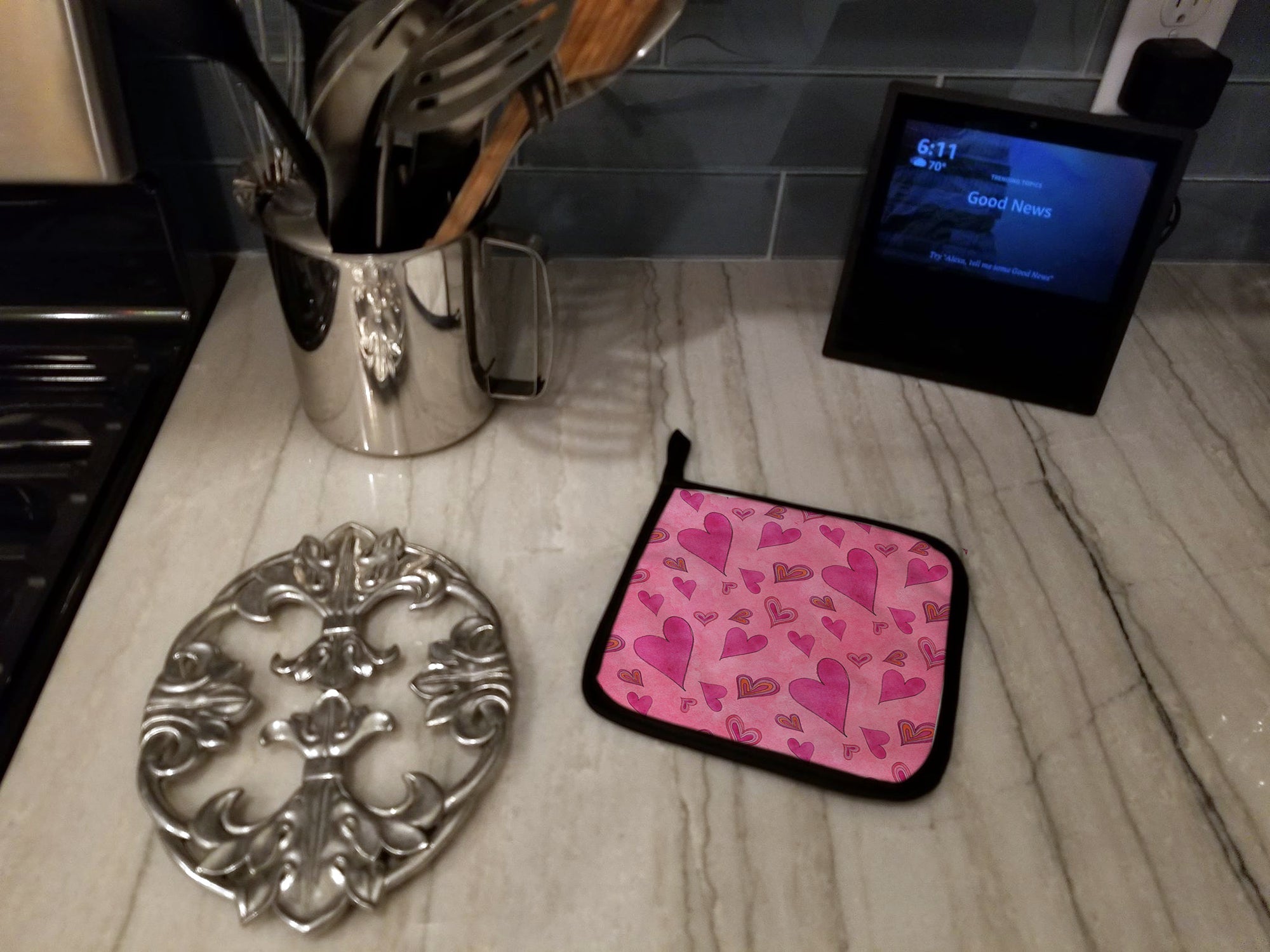 Watercolor Love and Hearts Pot Holders - Set of 2 - Heat-Resistant Kitchen Essentials BB7550PTHD