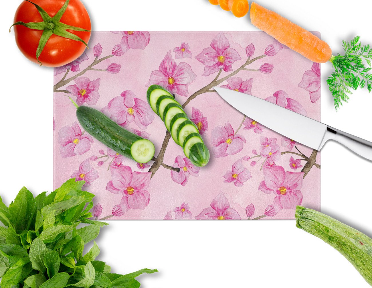 Watercolor Pink Flowers Glass Cutting Boards – Durable, Decorative Kitchen Art Large BB7505LCB