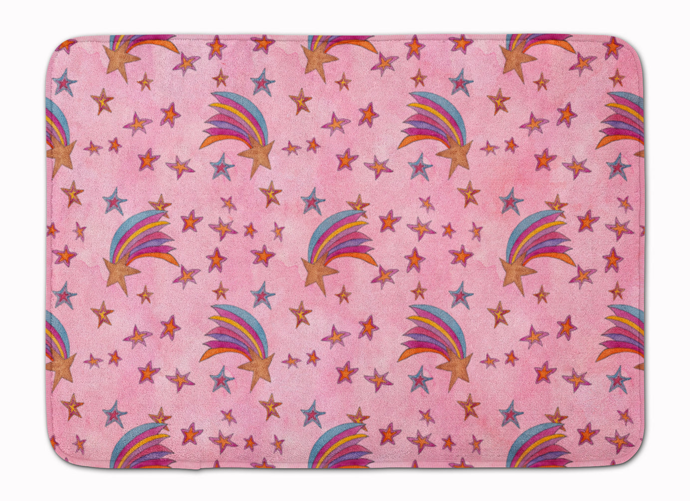 Watercolor Shooting Stars on Pink Machine Washable Memory Foam Mat BB7548RUG