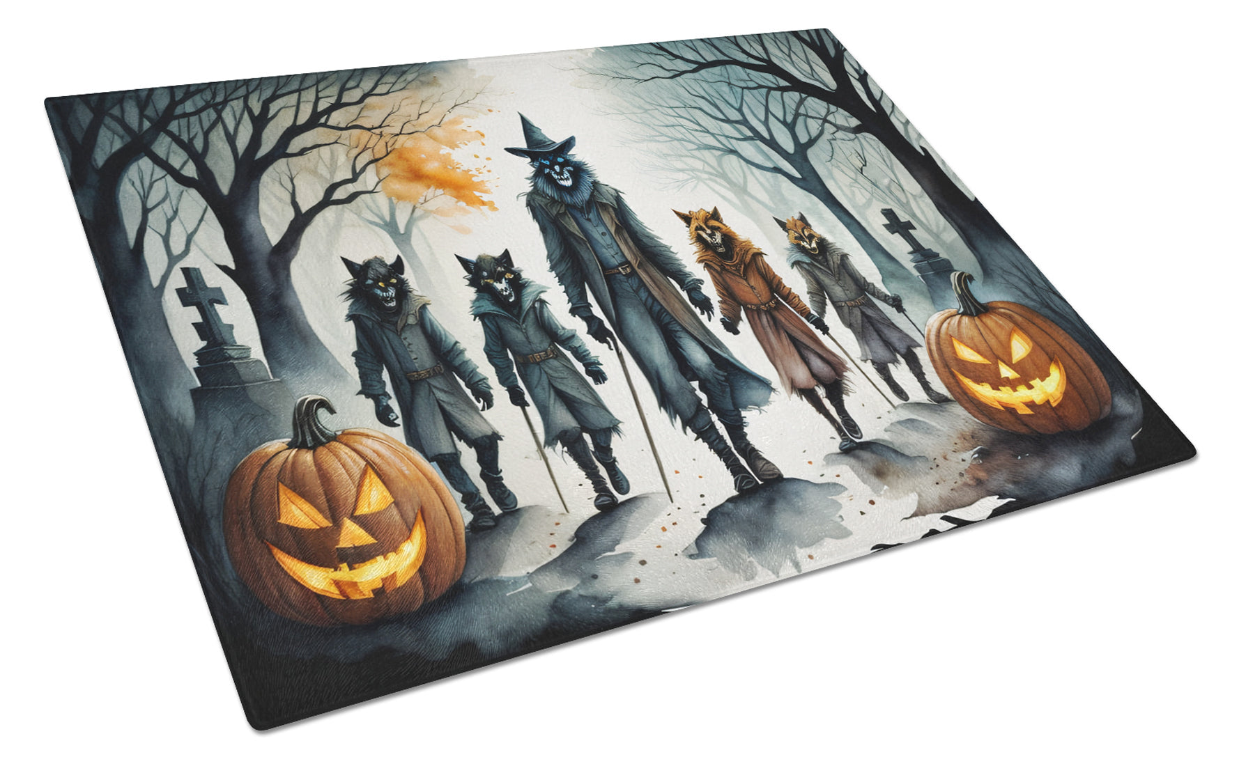 Werewolves Spooky Halloween Glass Cutting Boards – Durable, Decorative Kitchen Art Large