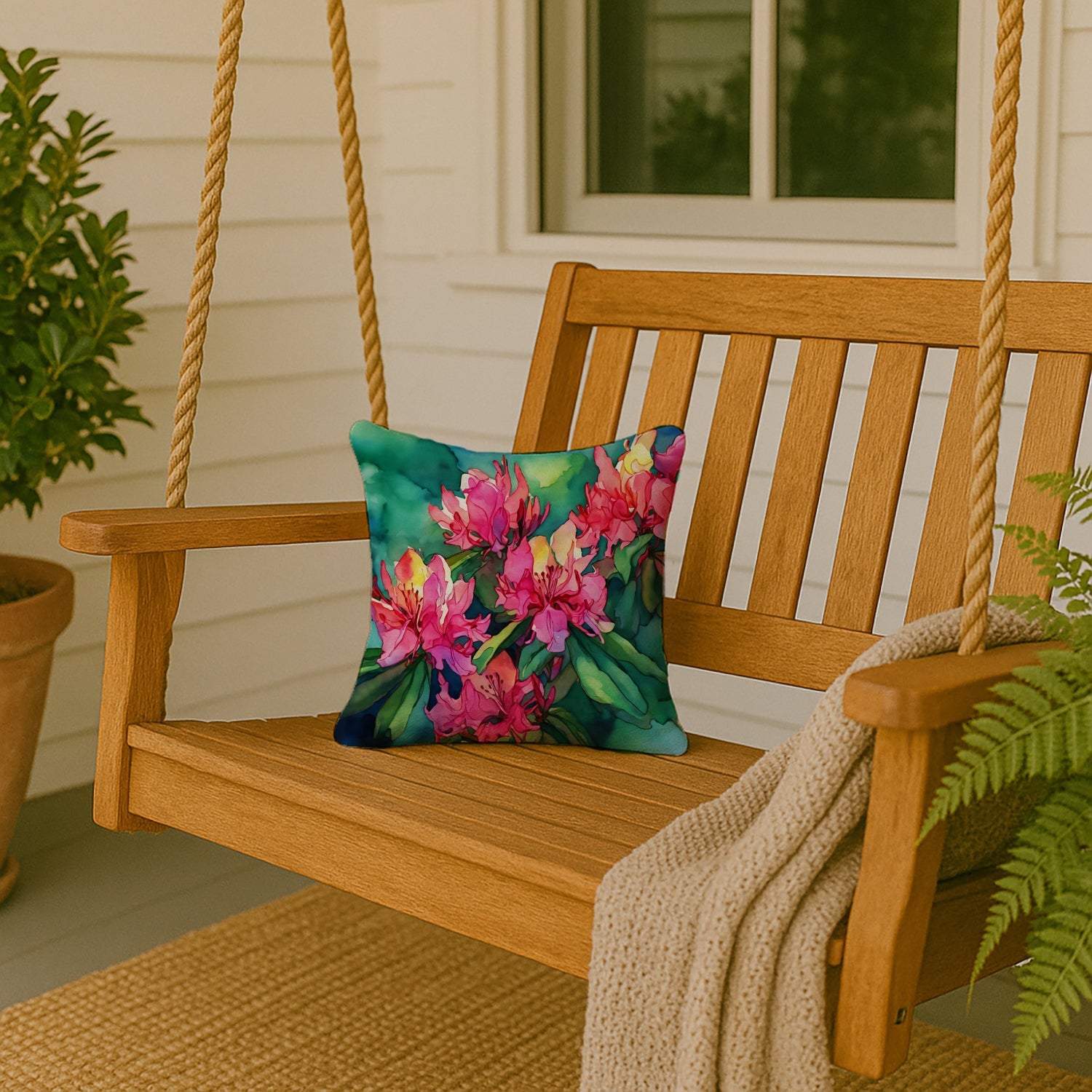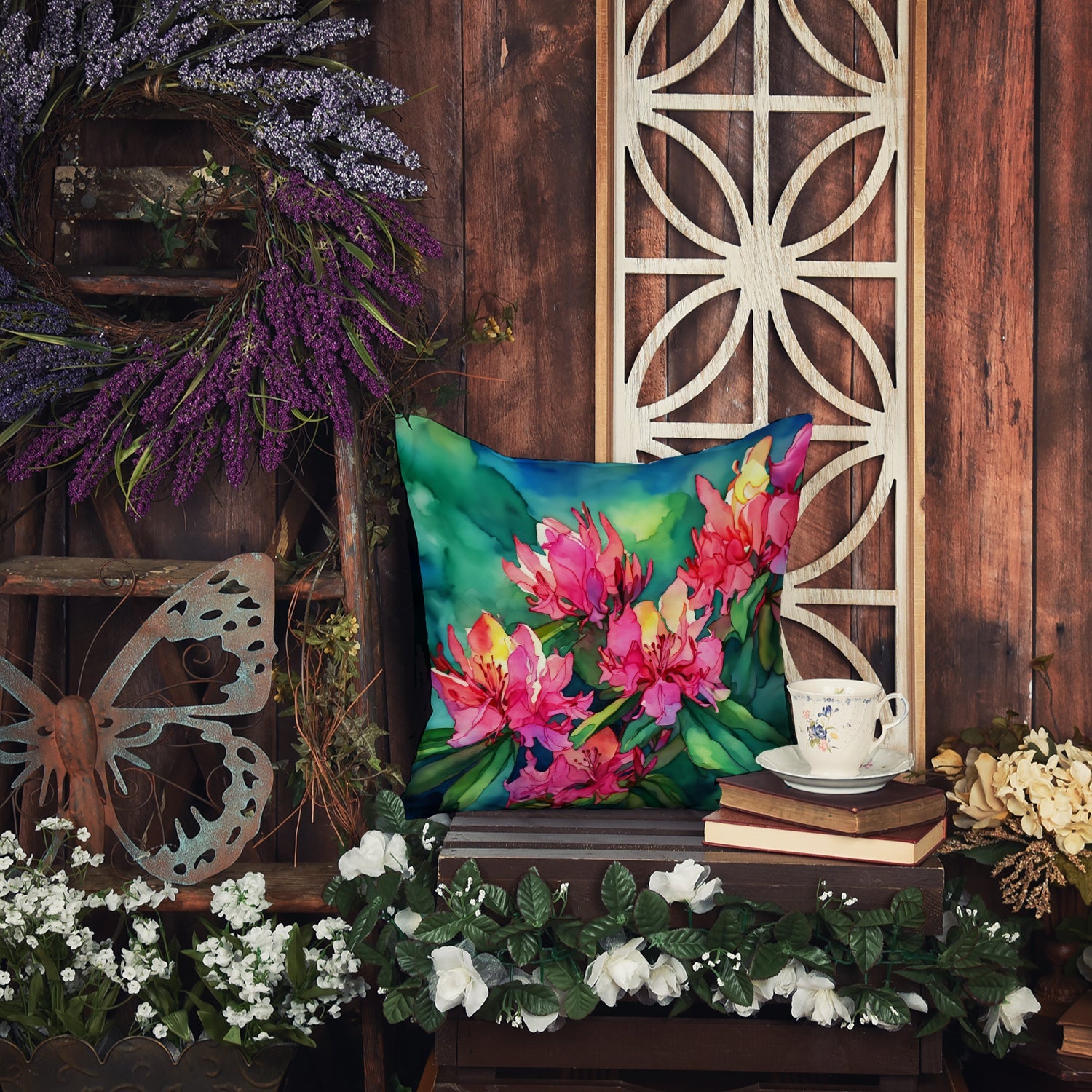 Throw Pillow featuring breed specific West Virginia Rhododendrons artwork. Add a touch of vibrancy and comfort to your outdoor seating with Caroline's Treasures Fabric Decorative Pillow. Measuring approximately 14 inches by 14 inches, this outdoor pillow is crafted to elevate the appeal of your patio furniture, infusing it with vivid color and artistic flair. The pillow includes a 100% Polyester Fabric sham filled with a quality pillow form to provide superior comfort. Innovatively made from our brand new material, specifically woven for its water resistance, this pillow is designed for durability. The soft canvas fabric offers versatility in use, fit for your indoor couch or your outdoor patio, porch, or veranda. The fabric is dyed with colorfast dyes built for resilience against weather conditions, ensuring the pillow retains its beauty over time. Constructed by sewing three fabric pieces to create a sham, the polyester insert is then nestled inside to form the pillow, resulting in an overstuffed pillow that maintains its shape. Both the sham and the pillow insert are proudly made in the United States. As the pillows are handcrafted, there may be minor variations in size, further enhancing their unique charm. Experience comfort in style with Caroline's Treasures Fabric Decorative Pillow.