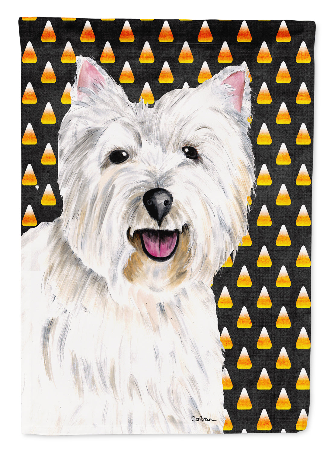 Decorate your space with our Halloween West Highland White Terrier artwork on a Large Flag. Presenting our Heavy Duty Polyester House Size Decorative Sleeve Pole Flag, a vibrant addition to enhance the aesthetic appeal of your home. This large decorative flag, measuring approximately 28 x 40 inches, offers ample coverage and visibility. Each flag is meticulously sewn and made individually, ensuring a unique piece that may slightly vary in size. It's a sleeve pole flag, designed to fit a standard decorative flag pole effortlessly. Please note that the flag pole and bracket are not included and should be purchased separately. What sets our flag apart is its dual-sided print. The design is mirrored on both sides of the fabric, allowing for uniform visibility regardless of the angle. Printed in full color, our flag showcases vibrant hues that truly stand out. To ensure lasting vibrancy and durability, the dyes are heat-set into the fabric. This ensures your flag remains bright and captivating through various weather conditions. Elevate the look of your home with our Heavy Duty Polyester House Size Decorative Sleeve Pole Flag!