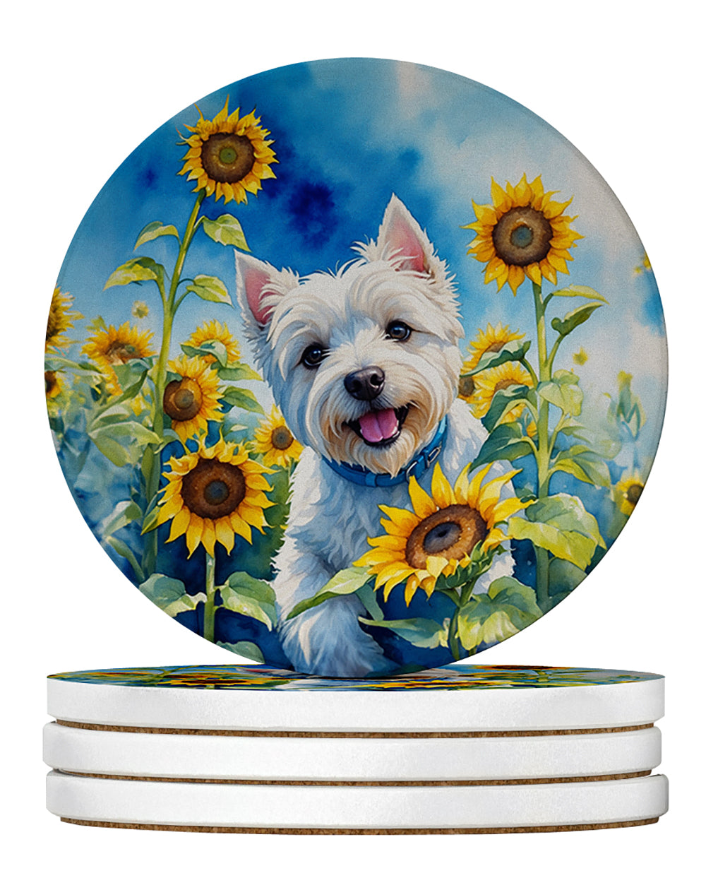 Westie in Sunflowers Large Sandstone Coasters Pack of 4