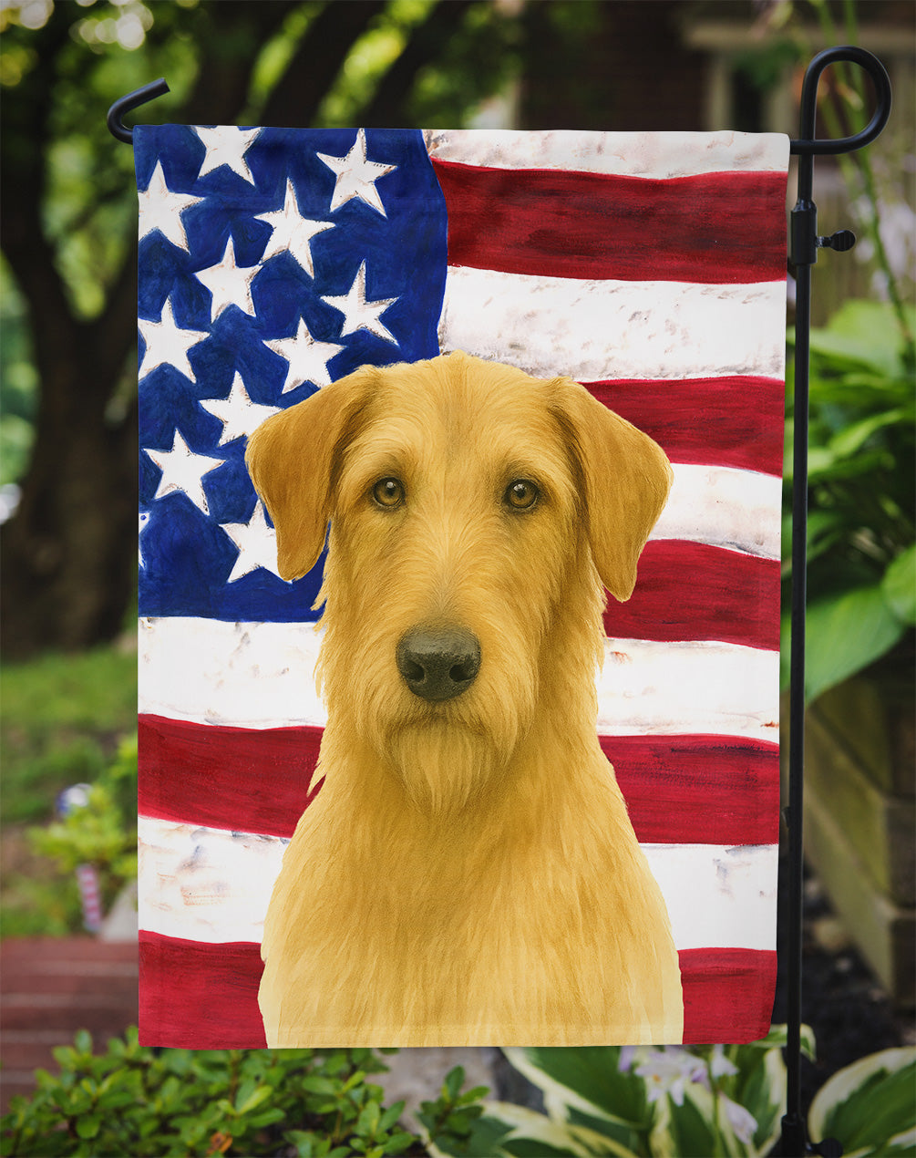 Garden Flag featuring breed specific Scottish Deerhound artwork. Enhance the beauty of your garden, patio, or yard with Caroline's Treasures Decorative Garden Flag, proudly made in the USA. Crafted from two pieces of thick, double-sided polyester fabric, this 2-ply garden flag is designed to withstand various weather conditions, making it water-resistant and weatherproof. Featuring correctly readable words on both sides, this garden flag offers a delightful visual experience from any angle. With its heavier weight, it stands out among other garden flags, ensuring stability and durability even in wind, rain, and snow. Measuring approximately 11 1/4 inches by 15 1/2 inches, this flag allows you to personalize your outdoor decor. It comes with a 1 1/2-inch sleeve sewn in, allowing easy attachment to any standard garden flag stand or garden size porch hanger (sold separately). Make a statement in your outdoor space with Caroline's Treasures Decorative Garden Flag, a vibrant and high-quality flag that adds color and personality to your surroundings. Proudly made in the USA, it's a symbol of quality craftsmanship and attention to detail.
