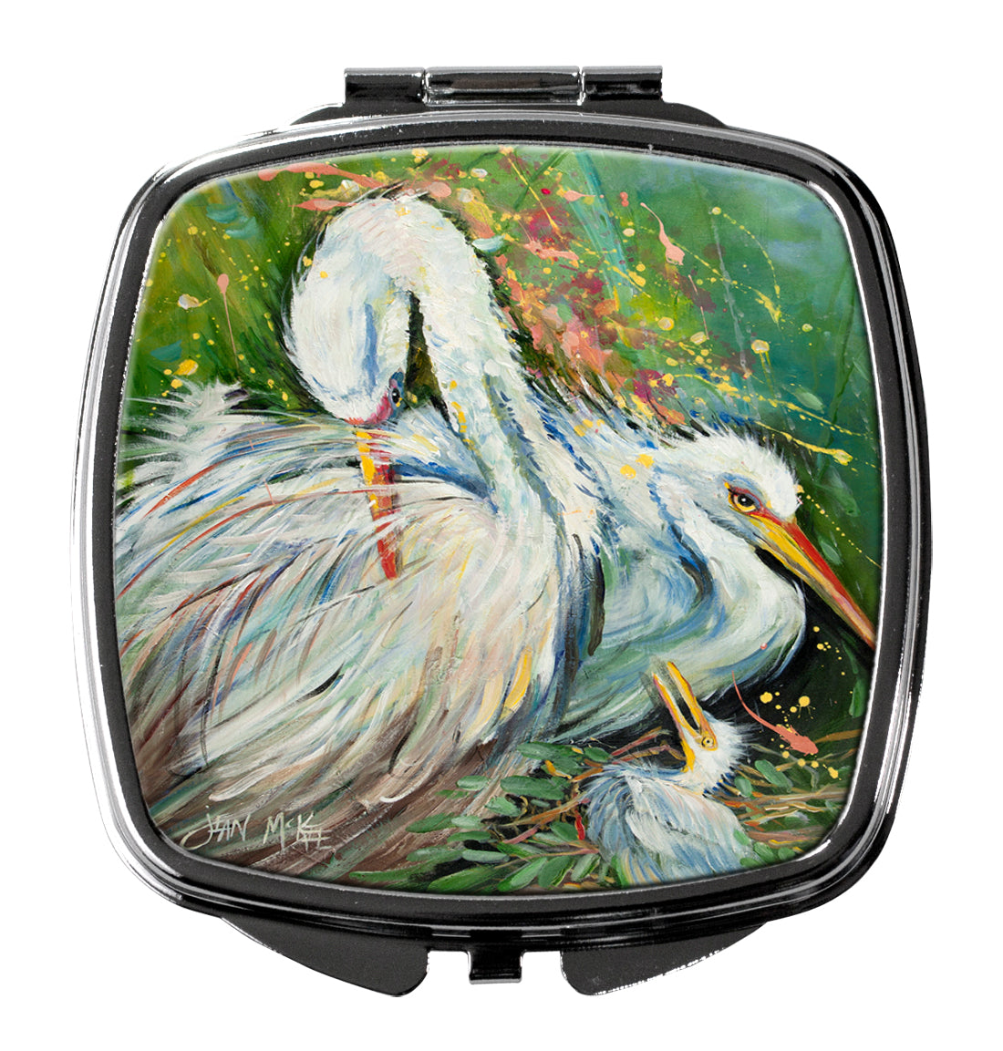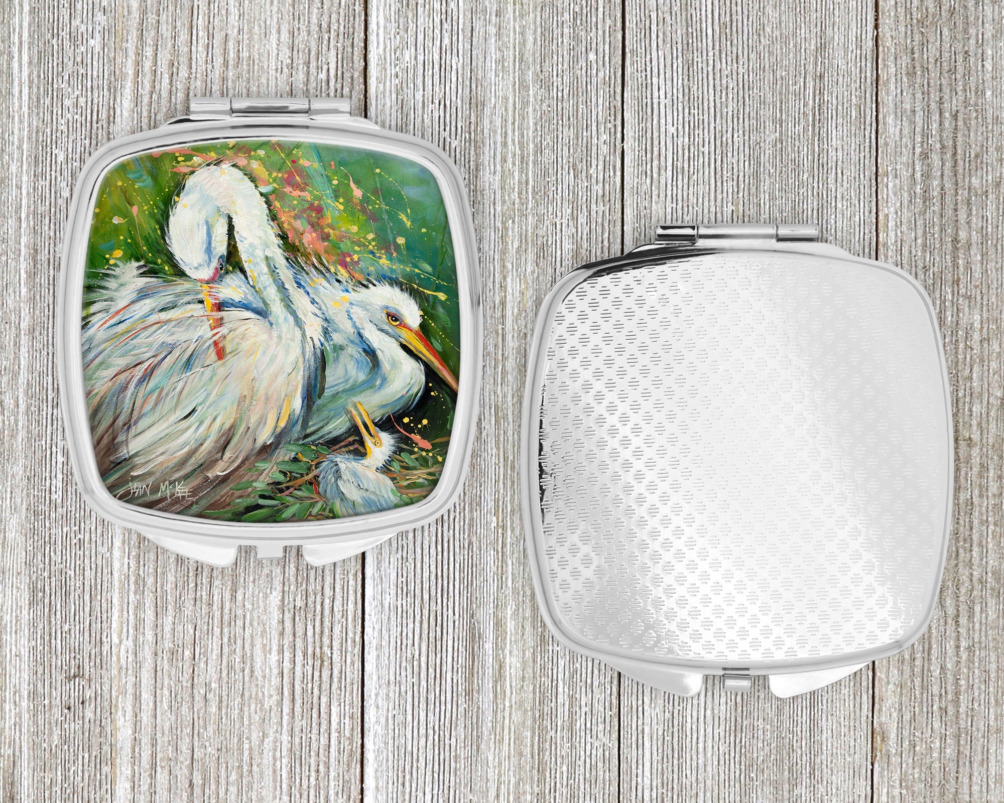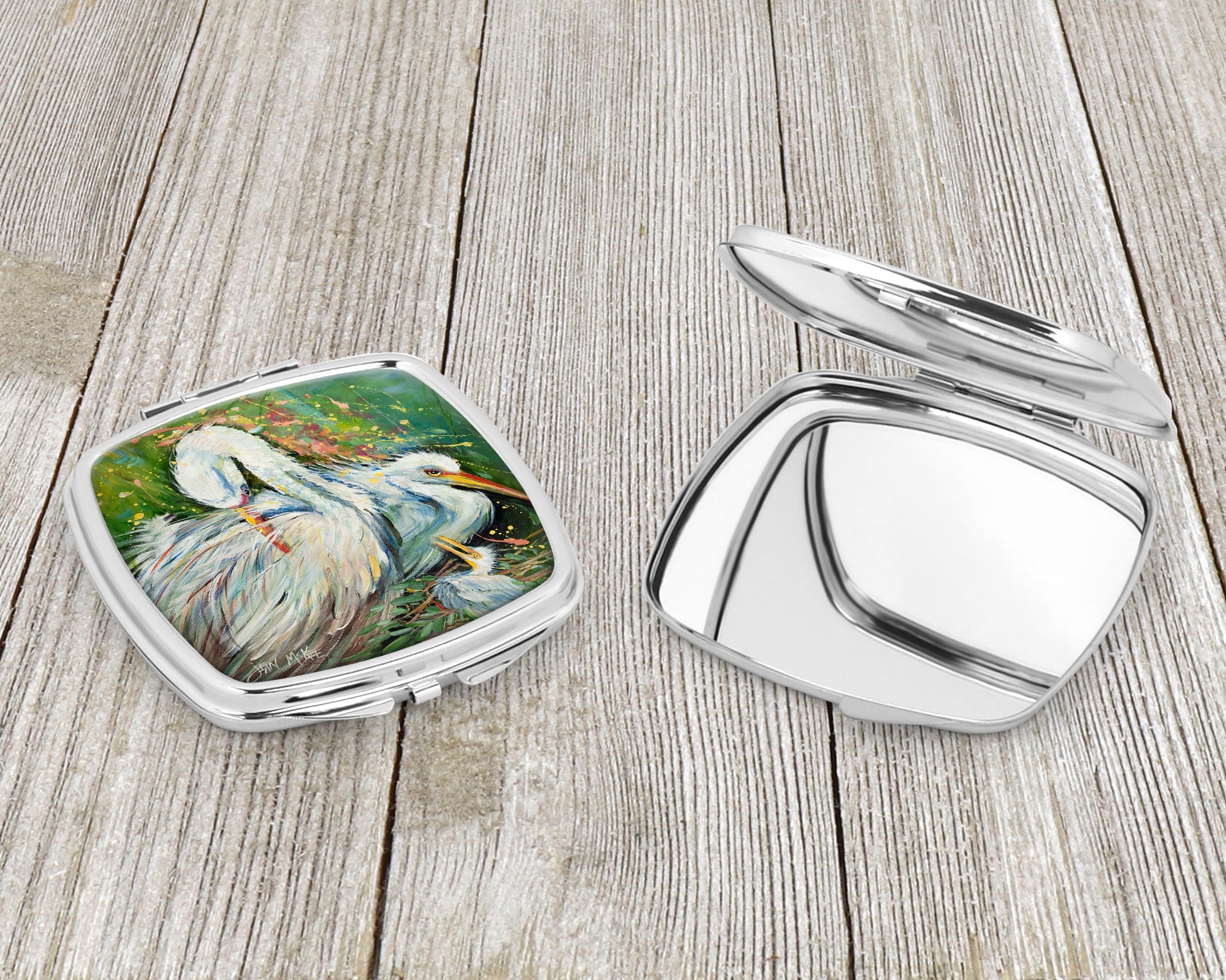 White Egret in the rain Compact Mirror – Stylish Purse Mirror with Artistic Covers JMK1210SCM