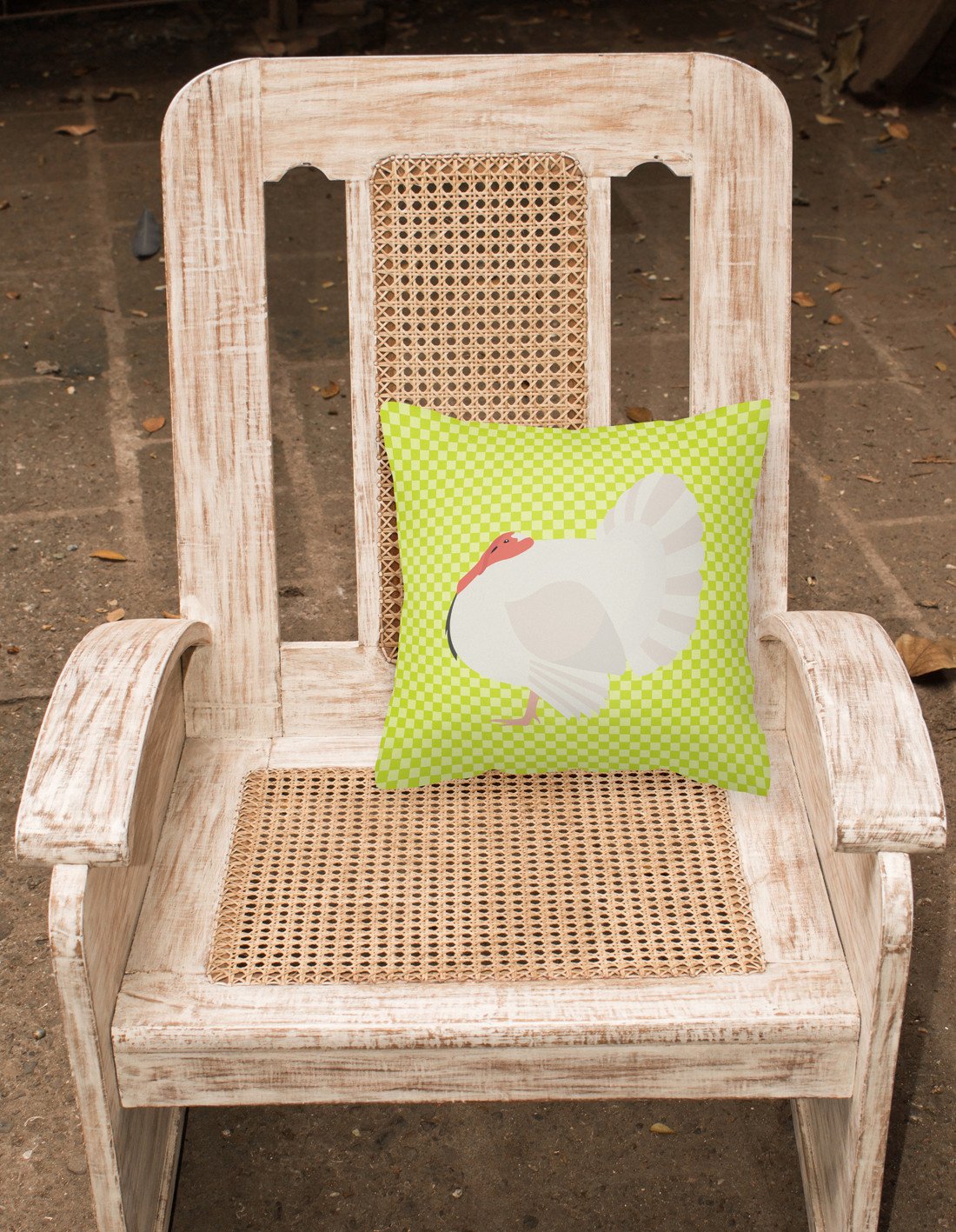 Decorate your space with our White Holland Turkey artwork on a Pillow. Revitalize your outdoor or indoor living space with Caroline's Treasures 18x18 Fabric Decorative Pillow. With a generously sized dimension of approximately 18 inches by 18 inches, this pillow makes a comfortable and aesthetic addition to any seating area. Made from a unique, water-resistant material developed by Caroline's Treasures, the pillow sham is 100% polyester fabric that's durable and ready to weather any condition. Its vibrant, full-color artwork will not fade over time as it is dyed with color-fast dyes. Whether you place it on your patio furniture, porch, veranda, or indoor couch, its soft canvas fabric ensures a cozy experience. The pillow is handcrafted in the United States, featuring a sham created from three pieces of fabric and a polyester insert for enduring shape and overstuffed comfort. Despite being robustly built to endure the outdoors, it is as soft and snug as your favorite indoor cushions. Please note, as all our pillows are handmade, sizes may vary slightly, adding to the charm of this unique decorative item.