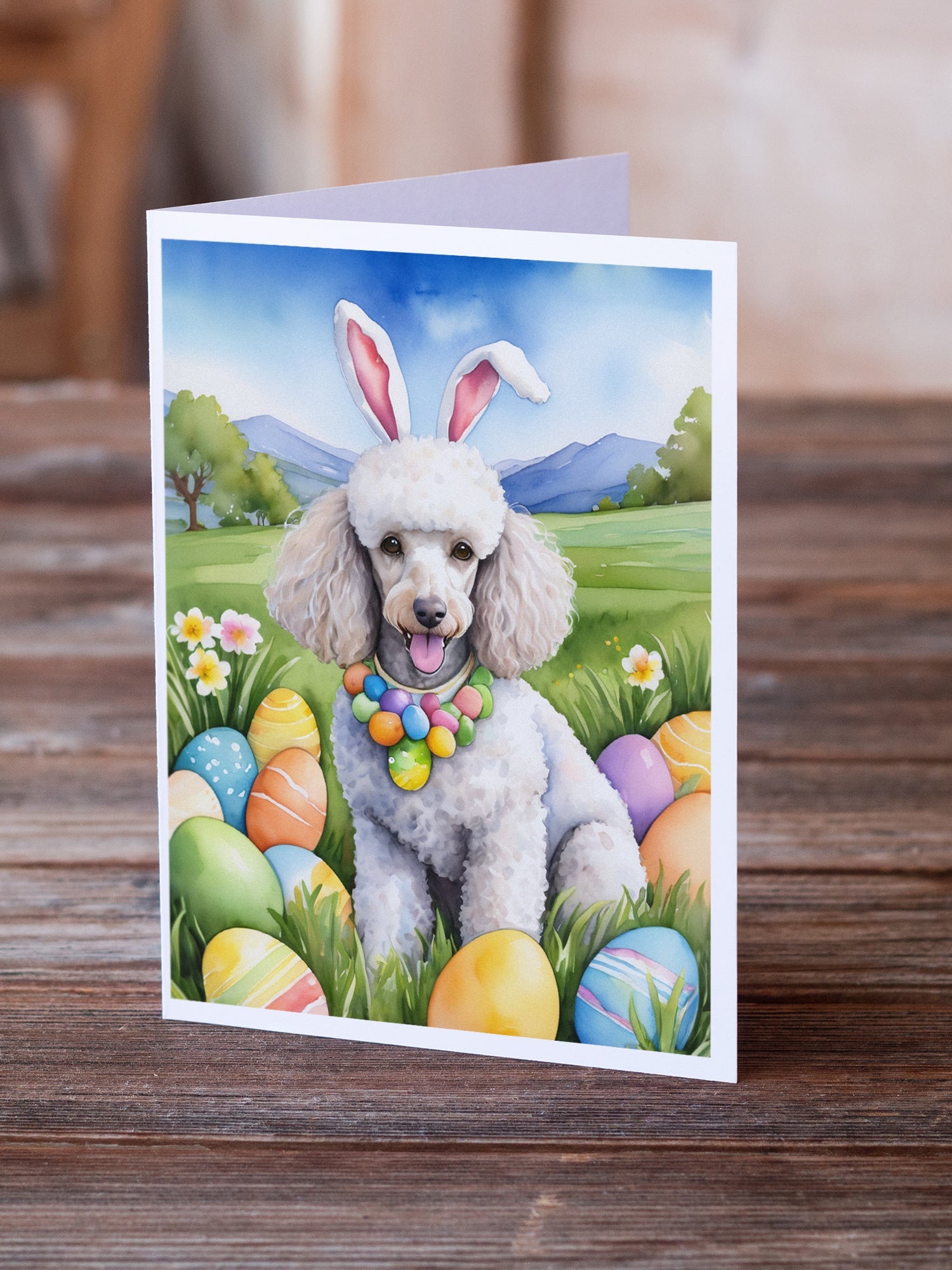 Decorate your space with our Easter Poodle artwork on a . Celebrate special moments with Caroline's Treasures Printed Greeting Card Pack. This pack includes eight beautifully folded 5x7 cards, accompanied by eight matching white envelopes. With blank interiors, these cards provide ample space for your personalized messages and heartfelt holiday greetings. Each card features captivating full-color artwork, meticulously printed in our facility on high-quality 80 lb cover stock or 216 GSM. The super smooth finish of the white cards enhances the visual impact of the artwork, creating a truly stunning presentation. Designed by our talented in-house artists or licensed artists, the artwork on these cards showcases their creativity and attention to detail. From vibrant illustrations to captivating designs, each card tells its own unique story. Whether it's for birthdays, anniversaries, holidays, or any special occasion, Caroline's Treasures Greeting Card Pack is the perfect way to convey your heartfelt sentiments. Share joy, love, and warm wishes with these exquisite cards and make every moment unforgettable.