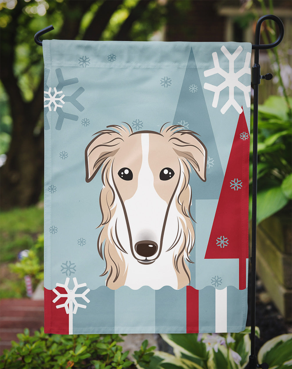 Decorate your space with our Borzoi/Russian Wolfhound artwork on a Garden Flag. Bring a bit of Winter into your home with a Winter Garden Flag. Enhance the beauty of your garden, patio, or yard with Caroline's Treasures Decorative Garden Flag, proudly made in the USA. Crafted from two pieces of thick, double-sided polyester fabric, this 2-ply garden flag is designed to withstand various weather conditions, making it water-resistant and weatherproof. Featuring correctly readable words on both sides, this garden flag offers a delightful visual experience from any angle. With its heavier weight, it stands out among other garden flags, ensuring stability and durability even in wind, rain, and snow. Measuring approximately 11 1/4 inches by 15 1/2 inches, this flag allows you to personalize your outdoor decor. It comes with a 1 1/2-inch sleeve sewn in, allowing easy attachment to any standard garden flag stand or garden size porch hanger (sold separately). Make a statement in your outdoor space with Caroline's Treasures Decorative Garden Flag, a vibrant and high-quality flag that adds color and personality to your surroundings. Proudly made in the USA, it's a symbol of quality craftsmanship and attention to detail.