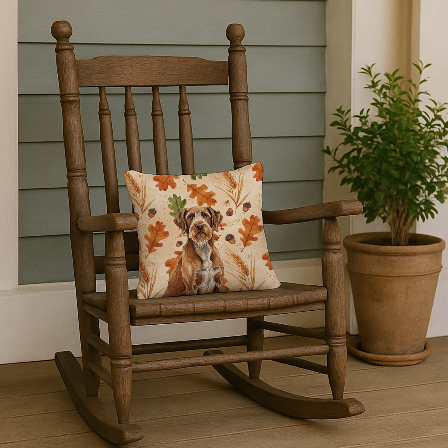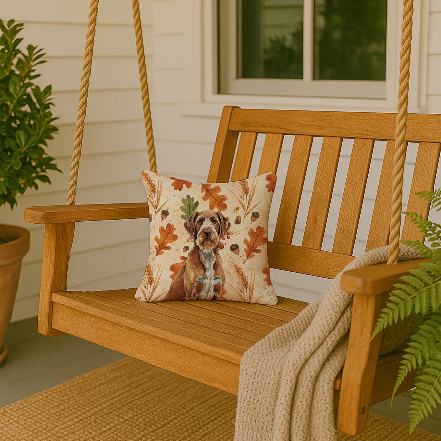 Throw Pillow featuring breed specific Wirehaired Pointing Griffon artwork. Celebrate Thanksgiving with this Thanksgiving Pillow. Add a touch of vibrancy and comfort to your outdoor seating with Caroline's Treasures Fabric Decorative Pillow. Measuring approximately 14 inches by 14 inches, this outdoor pillow is crafted to elevate the appeal of your patio furniture, infusing it with vivid color and artistic flair. The pillow includes a 100% Polyester Fabric sham filled with a quality pillow form to provide superior comfort. Innovatively made from our brand new material, specifically woven for its water resistance, this pillow is designed for durability. The soft canvas fabric offers versatility in use, fit for your indoor couch or your outdoor patio, porch, or veranda. The fabric is dyed with colorfast dyes built for resilience against weather conditions, ensuring the pillow retains its beauty over time. Constructed by sewing three fabric pieces to create a sham, the polyester insert is then nestled inside to form the pillow, resulting in an overstuffed pillow that maintains its shape. Both the sham and the pillow insert are proudly made in the United States. As the pillows are handcrafted, there may be minor variations in size, further enhancing their unique charm. Experience comfort in style with Caroline's Treasures Fabric Decorative Pillow.