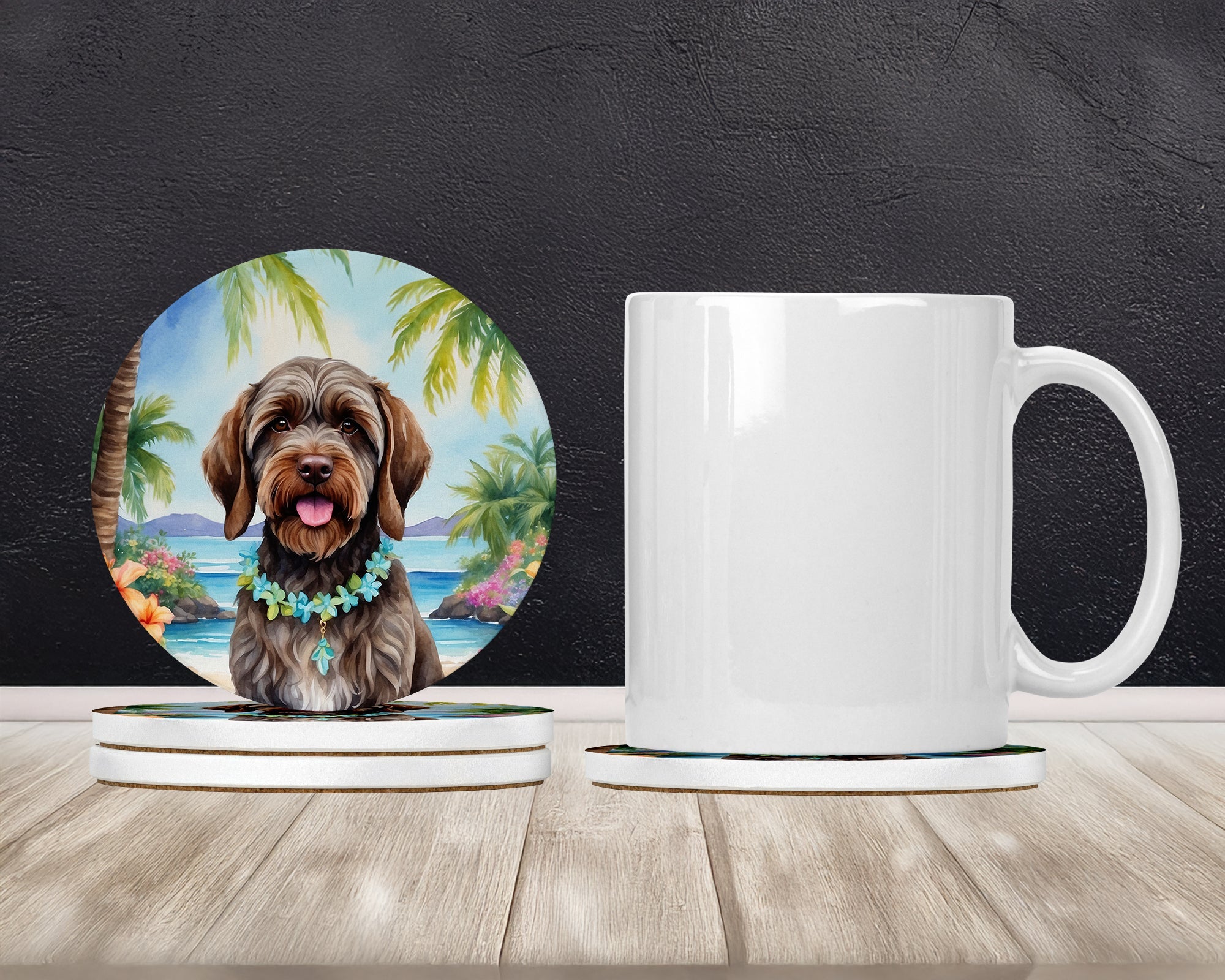 Large Sandstone Coasters Pack of 4 featuring breed specific Wirehaired Pointing Griffon artwork. Introducing Caroline's Treasures Large Sandstone Coasters Pack of 4, the perfect addition to your home decor. Each coaster measures nearly 4 inches and is made from absorbent sandstone with a cork backing. Designed and printed in the United States, these coasters feature artwork from Caroline's Treasures' talented artists. Protect your countertops and tables from hot and cold drink condensation with these absorbent coasters. They efficiently absorb moisture, ensuring your surfaces stay dry and clean. Choose from a wide range of designs to update and enhance your decor or give them as a thoughtful gift for any occasion. Cleaning is a breeze—simply wipe the coaster with a damp towel to remove any spills or stains. Each set comes in a brown gift box, making it ready to be wrapped for that special person in your life. These absorbent sandstone coasters also make an excellent housewarming gift, providing both practicality and style. Celebrate birthdays, Mother's Day, Father's Day, Thanksgiving, Christmas, Teacher's Appreciation Day, or simply show someone you care with these versatile and charming coasters. Caroline's Treasures Large Sandstone Coasters Pack of 4 is the perfect happy gift for any occasion.