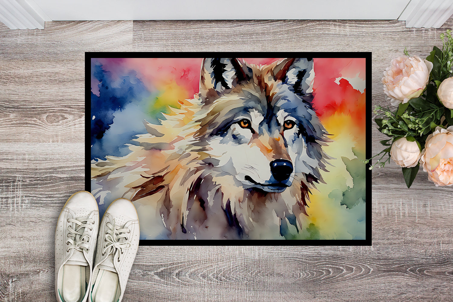 Decorate your space with our Wolves artwork on a Doormat. Welcome your guests in style with our Artwork Door Mat, designed to withstand almost any weather condition. This mat, measuring approximately 24 by 36 inches, is held together by durable black binding tape. Its top layer, composed of polyester felt, is dyed with the eye-catching image you see on the mat. A few layers below provide the mat with stability, while its rubber bottom is stamped to help prevent slipping and ensures safety. Our mat works wonderfully as both an indoor or outdoor door mat. For cleaning, simply hose it off with water or use a power washer - no need for any cleaner that produces suds. Avoid scrubbing with a brush, instead, opt for the vacuum on floor setting. Designed manufactured and printed in the USA, this mat is a perfect addition to your porch, outdoor kitchen, entryway, or any indoor space. Its unique design makes it a charming decorative rug that greets your guests and adds a stylish touch to your home decor.