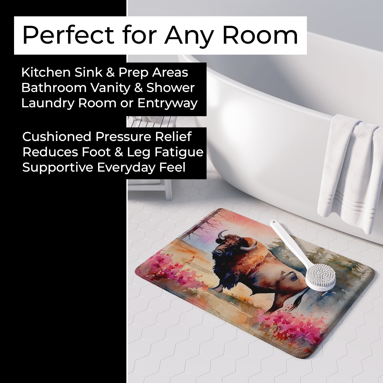 Shown here is the Wood Bison Memory Foam Kitchen Mat from Caroline's Treasures featuring artwork of a Wood Bison in a Everyday design. The detailed illustration and vibrant colors make it a standout accent that celebrates both seasonal style and love for the subject. Bring the beauty of nature indoors with our Watercolor Wildlife Collection. Featuring artistic, hand-painted wildlife designs in soft watercolor tones, this collection adds serene charm and uplifting style to home décor and thoughtful gifts for nature lovers. Everyday décor celebrates personal style and the small moments that make a house feel like home. Thoughtful designs add warmth and personality that can be enjoyed year-round. Transform your floor into a work of art with Caroline's Treasures' Memory Foam Mat. This mat offers not only a stunning visual appeal but also a luxurious, plush feel that's incredibly comfortable to the touch. It's a versatile, machine-washable mat designed for both bath and kitchen use, ensuring you experience the best in comfort and convenience. Care Instructions: Maintaining this memory foam mat is a breeze. Simply follow the care instructions on the product tag. It's recommended to wash in cold water and dry on a low-temperature setting in the dryer. This ensures the mat retains its quality and longevity, allowing you to enjoy its beauty and comfort for a long time. Caroline's Treasures' Memory Foam Mat Machine Washable is the perfect blend of artistry, comfort, and practicality, making it a standout addition to any space. Upgrade your home decor with this versatile and stylish mat today. Wood bison are massive animals with heavy coats and broad frames. Their presence reflects endurance and heritage. Makes a heartfelt gift for: Wood Bison owners, Wild Animals lovers, Everyday gifts, pet parents, friends who adore their Wood Bison, or anyone celebrating Wild Animals.