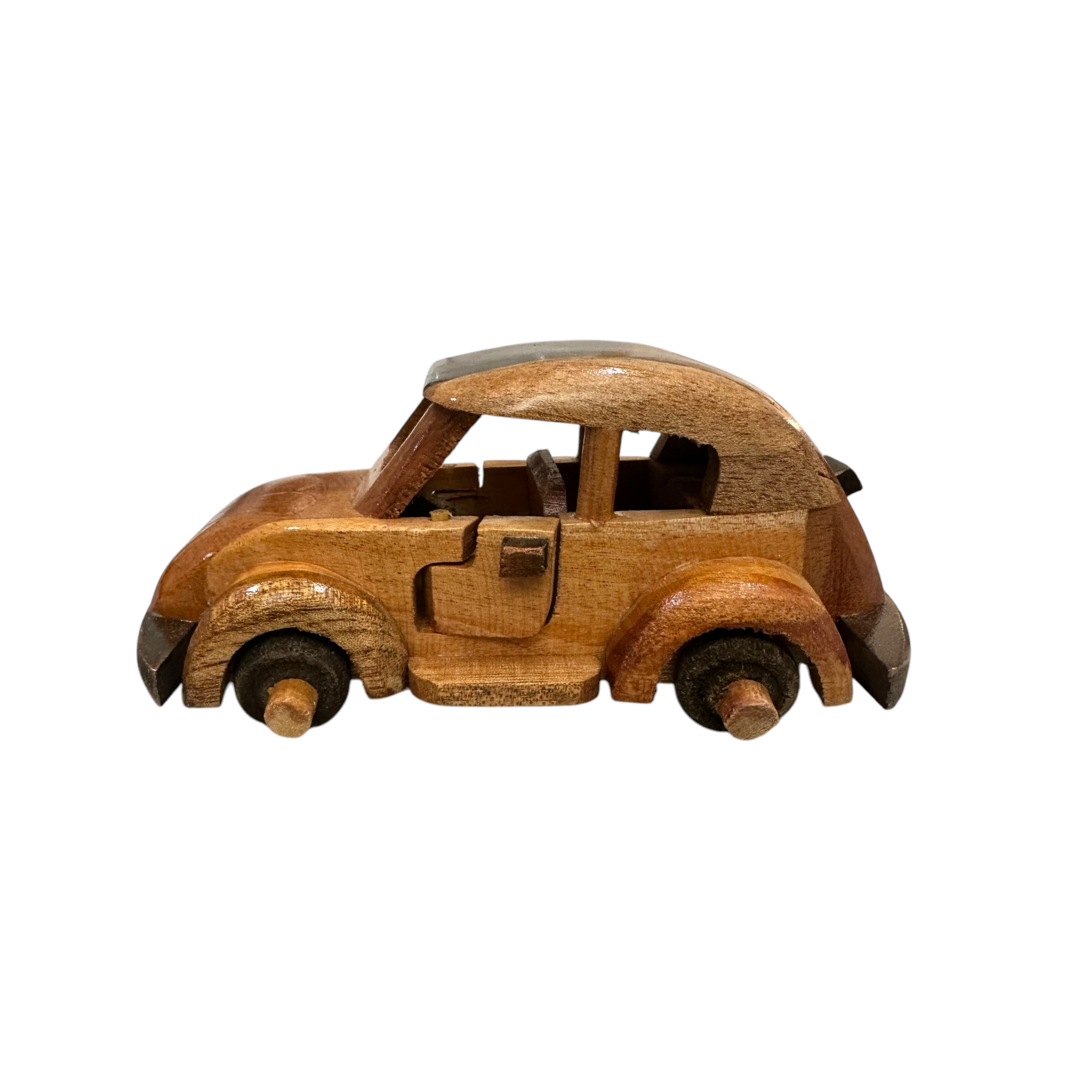 This handcrafted wooden car features opening doors and moving wheels, combining charm with functionality. Perfect as décor or a gift for car lovers!