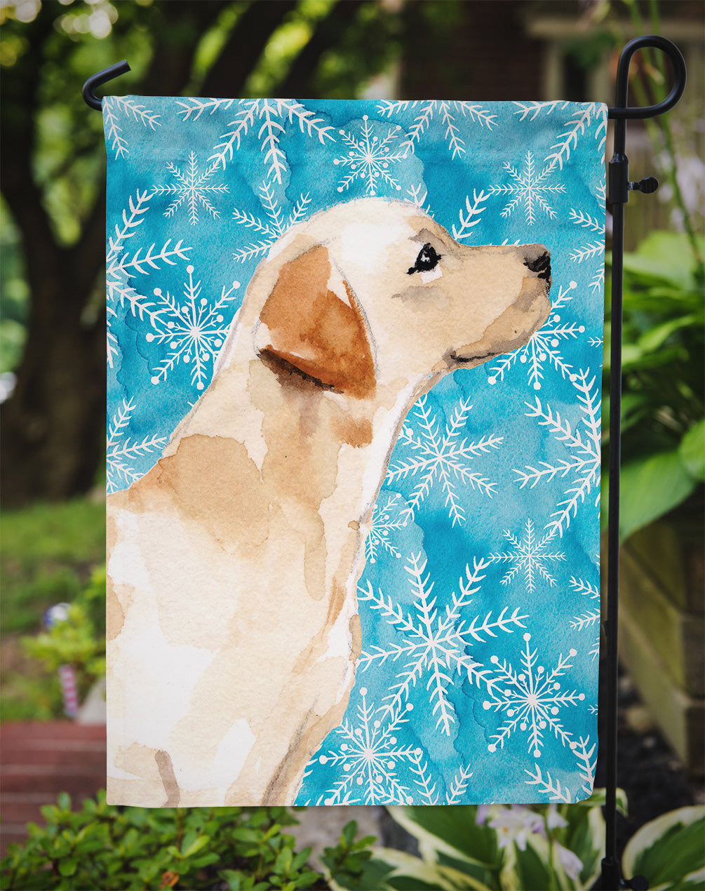 Decorate your space with our Labrador Retriever artwork on a Garden Flag. Bring a bit of Winter into your home with a Winter Garden Flag. Enhance the beauty of your garden, patio, or yard with Caroline's Treasures Decorative Garden Flag, proudly made in the USA. Crafted from two pieces of thick, double-sided polyester fabric, this 2-ply garden flag is designed to withstand various weather conditions, making it water-resistant and weatherproof. Featuring correctly readable words on both sides, this garden flag offers a delightful visual experience from any angle. With its heavier weight, it stands out among other garden flags, ensuring stability and durability even in wind, rain, and snow. Measuring approximately 11 1/4 inches by 15 1/2 inches, this flag allows you to personalize your outdoor decor. It comes with a 1 1/2-inch sleeve sewn in, allowing easy attachment to any standard garden flag stand or garden size porch hanger (sold separately). Make a statement in your outdoor space with Caroline's Treasures Decorative Garden Flag, a vibrant and high-quality flag that adds color and personality to your surroundings. Proudly made in the USA, it's a symbol of quality craftsmanship and attention to detail.