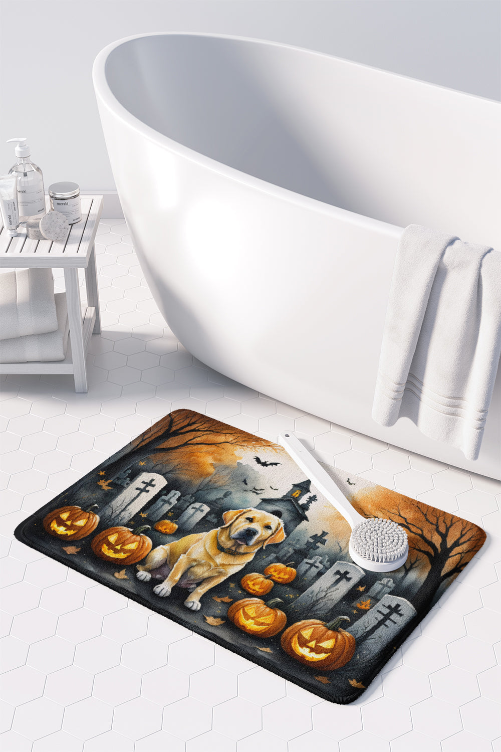 Decorate your space with our Halloween Labrador Retriever artwork on a Floor Mat. Transform your floor into a work of art with Caroline's Treasures' Memory Foam Mat. This mat offers not only a stunning visual appeal but also a luxurious, plush feel that's incredibly comfortable to the touch. It's a versatile, machine-washable mat designed for both bath and kitchen use, ensuring you experience the best in comfort and convenience. Care Instructions: Maintaining this memory foam mat is a breeze. Simply follow the care instructions on the product tag. It's recommended to wash in cold water and dry on a low-temperature setting in the dryer. This ensures the mat retains its quality and longevity, allowing you to enjoy its beauty and comfort for a long time. Caroline's Treasures' Memory Foam Mat Machine Washable is the perfect blend of artistry, comfort, and practicality, making it a standout addition to any space. Upgrade your home decor with this versatile and stylish mat today.