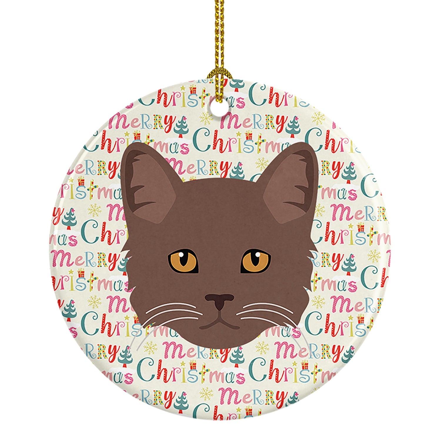 Decorate your space with our Christmas York Chocolate Cat artwork on a Ornament. Add a touch of personalized charm to your Christmas tree this holiday season with our Ceramic Ornament. Measuring 2.8125 inches in diameter, this round porcelain ornament beautifully reflects your festive lights, enhancing your holiday decor. The gloss surface sets off the vibrant, full-color artwork contributed by one of our talented artists, bringing a pop of color and joy to your tree. This Ceramic Ornament doesn't stop at being merely decorative. The white back is designed for personalization. Write a heartfelt message, mark a special year, or inscribe a date with a paint pen or a permanent marker to create a treasured memento. Please ensure you allow any personalization to dry thoroughly before handling to maintain the pristine finish. Included with the ornament is a delicate gold cord for easy hanging. Made in the USA, this Ceramic Ornament makes an exceptional gift for a pet sitter, teacher, family member, or anyone you wish to share a little Christmas magic with. With its blend of style, charm, and personal touch, it's a meaningful addition to any Christmas tree.