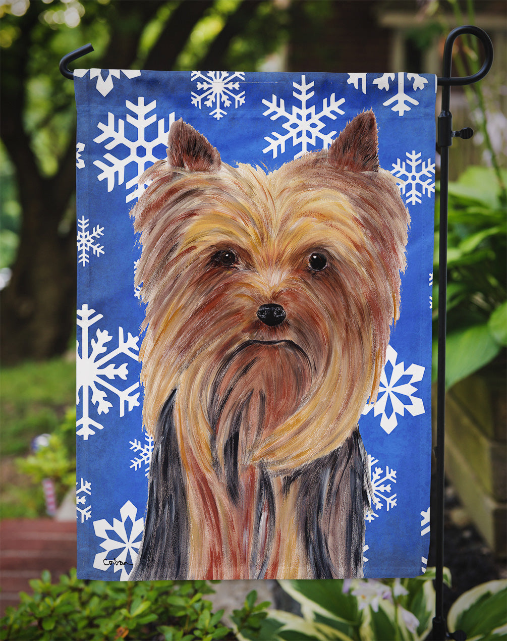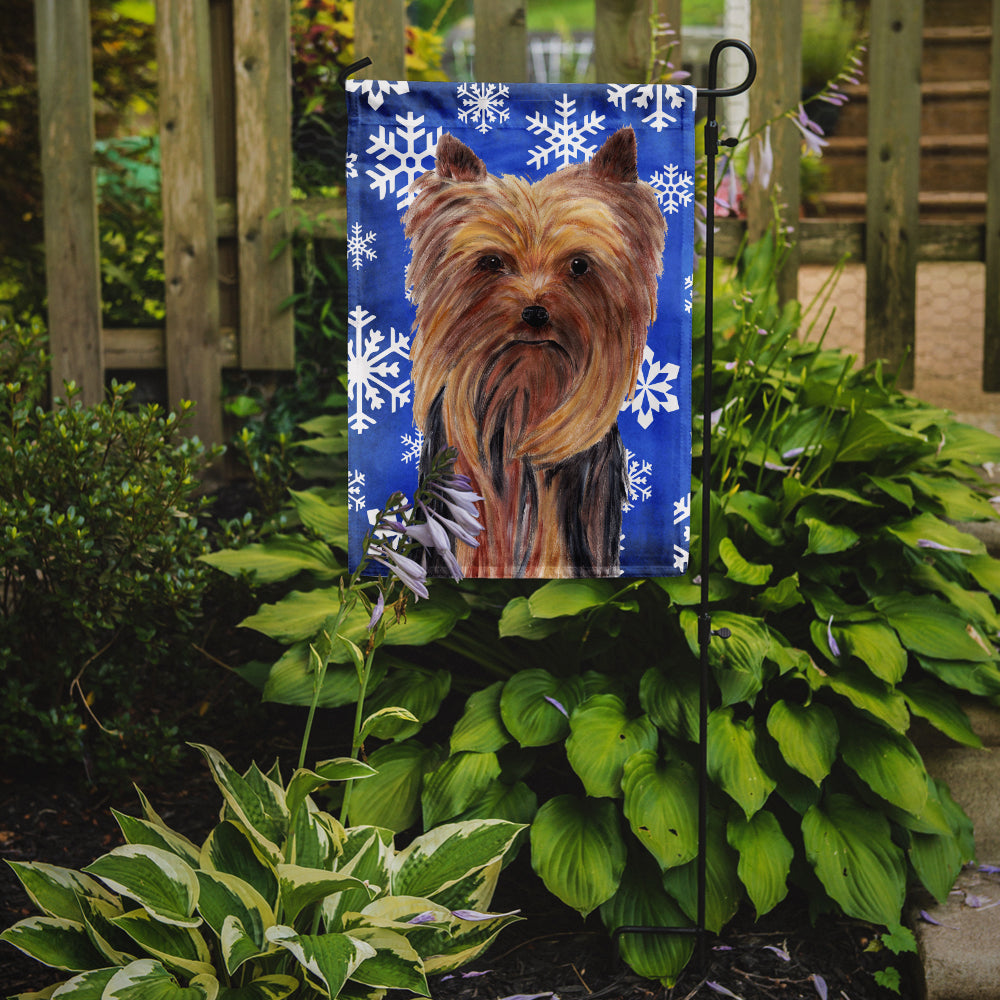Decorate your space with our Christmas Yorkshire Terrier artwork on a Garden Flag. Bring a bit of Winter into your home with a Winter Garden Flag. Enhance the beauty of your garden, patio, or yard with Caroline's Treasures Decorative Garden Flag, proudly made in the USA. Crafted from two pieces of thick, double-sided polyester fabric, this 2-ply garden flag is designed to withstand various weather conditions, making it water-resistant and weatherproof. Featuring correctly readable words on both sides, this garden flag offers a delightful visual experience from any angle. With its heavier weight, it stands out among other garden flags, ensuring stability and durability even in wind, rain, and snow. Measuring approximately 11 1/4 inches by 15 1/2 inches, this flag allows you to personalize your outdoor decor. It comes with a 1 1/2-inch sleeve sewn in, allowing easy attachment to any standard garden flag stand or garden size porch hanger (sold separately). Make a statement in your outdoor space with Caroline's Treasures Decorative Garden Flag, a vibrant and high-quality flag that adds color and personality to your surroundings. Proudly made in the USA, it's a symbol of quality craftsmanship and attention to detail.