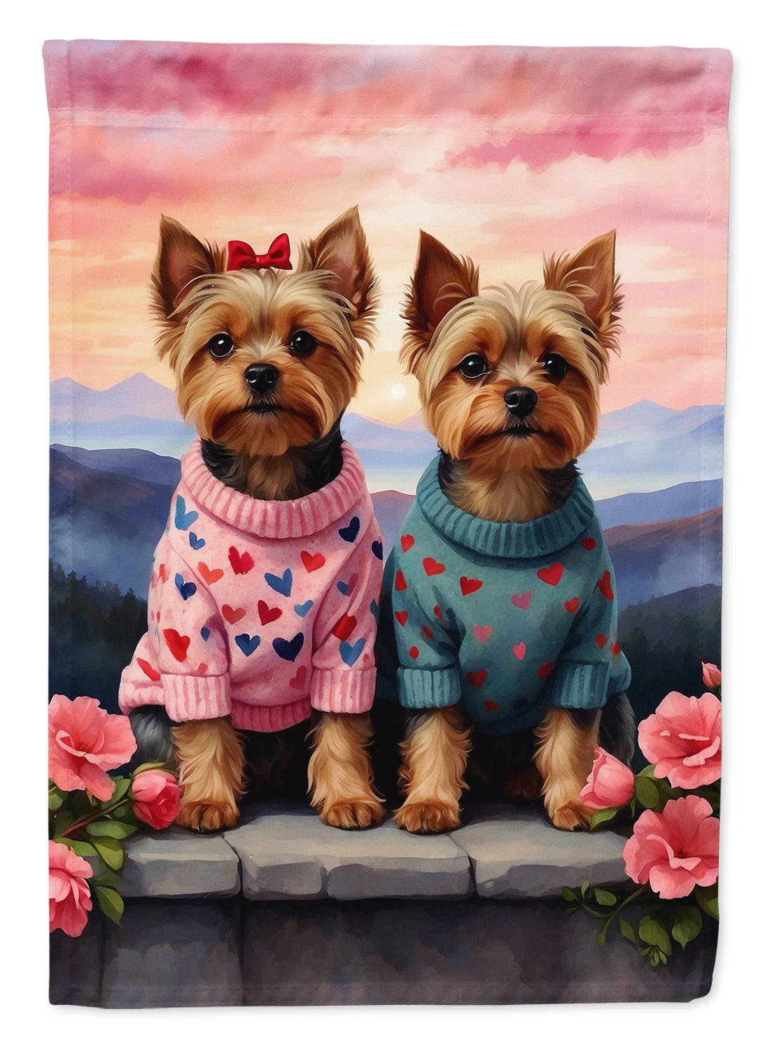 Decorate your space with our Valentine's Day Yorkshire Terrier artwork on a Large Flag. Presenting our Heavy Duty Polyester House Size Decorative Sleeve Pole Flag, a vibrant addition to enhance the aesthetic appeal of your home. This large decorative flag, measuring approximately 28 x 40 inches, offers ample coverage and visibility. Each flag is meticulously sewn and made individually, ensuring a unique piece that may slightly vary in size. It's a sleeve pole flag, designed to fit a standard decorative flag pole effortlessly. Please note that the flag pole and bracket are not included and should be purchased separately. What sets our flag apart is its dual-sided print. The design is mirrored on both sides of the fabric, allowing for uniform visibility regardless of the angle. Printed in full color, our flag showcases vibrant hues that truly stand out. To ensure lasting vibrancy and durability, the dyes are heat-set into the fabric. This ensures your flag remains bright and captivating through various weather conditions. Elevate the look of your home with our Heavy Duty Polyester House Size Decorative Sleeve Pole Flag!
